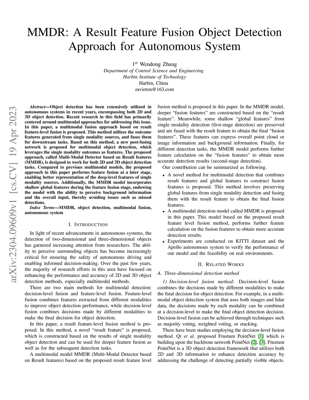 MMDR: A Result Feature Fusion Object Detection Approach for Autonomous