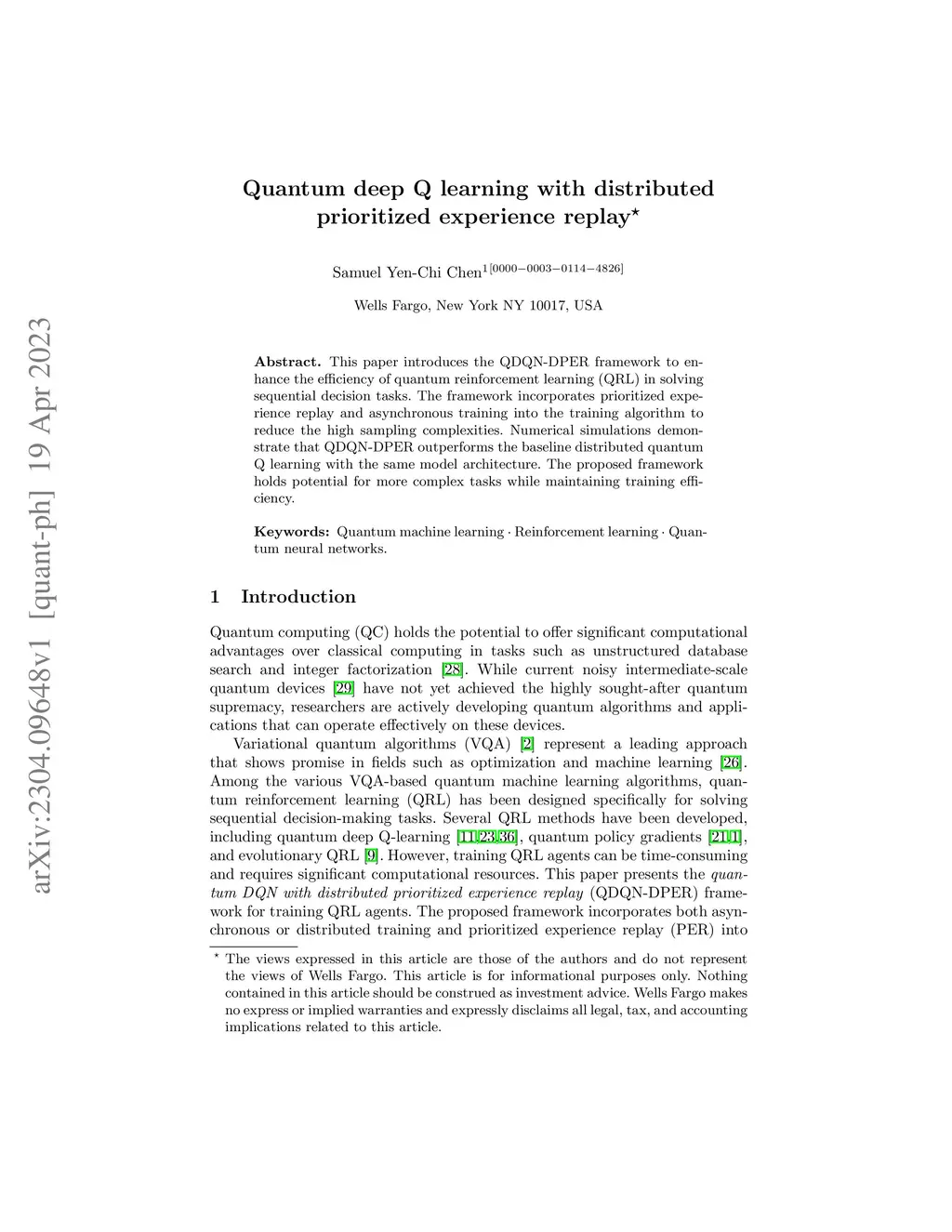This paper introduces the QDQN-DPER framework to enhance the efficiency of quantum reinforcement learning (QRL) in solving sequential decision tasks. The framework incorporates prioritized experience replay and asynchronous training into the training algorithm to reduce the high sampling complexities. Numerical simulations demonstrate that QDQN-DPER outperforms the baseline distributed quantum Q learning with the same model architecture. The proposed framework holds potential for more complex tasks while maintaining training efficiency.