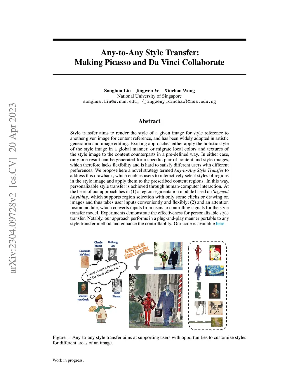 Any-to-Any Style Transfer: Making Picasso and Da Vinci Collaborate