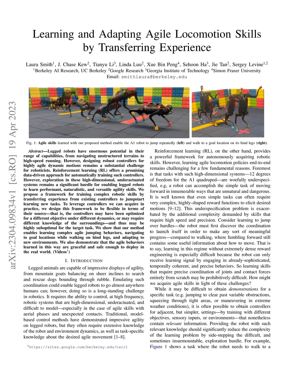 Learning and Adapting Agile Locomotion Skills by Transferring Experience