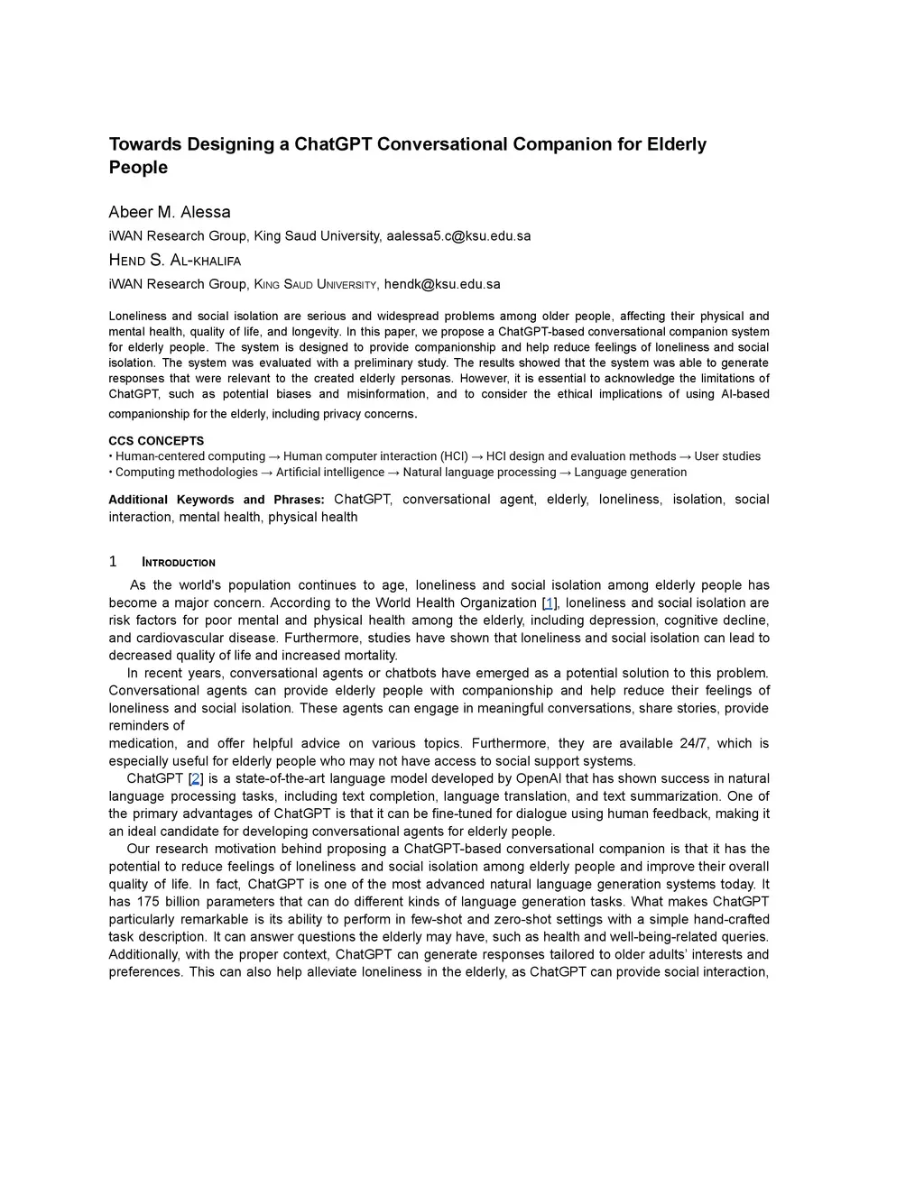 Towards Designing a ChatGPT Conversational Companion for Elderly People