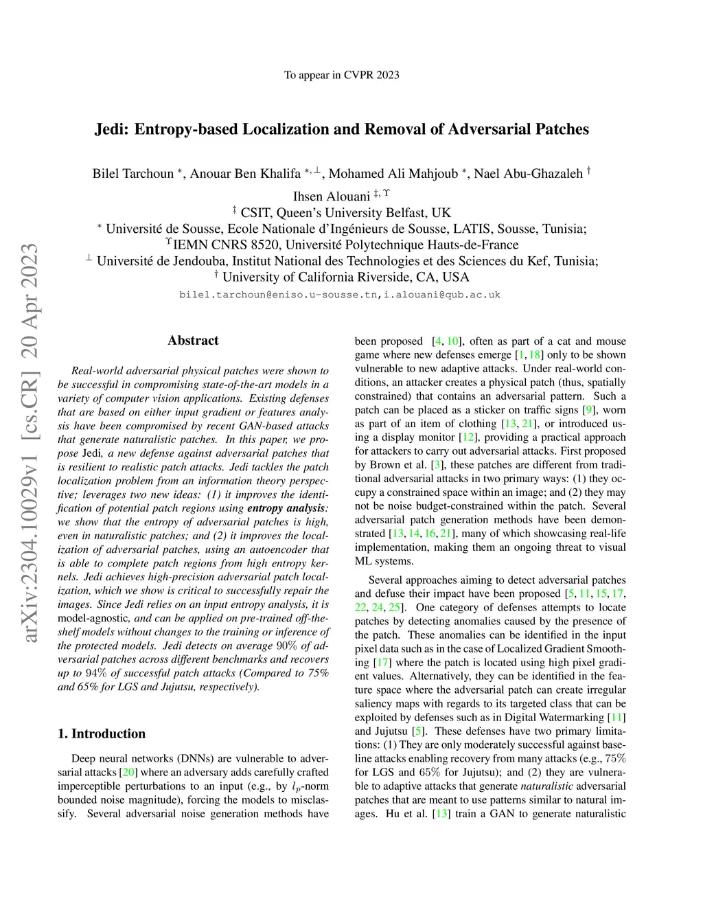 Jedi: Entropy-based Localization and Removal of Adversarial Patches