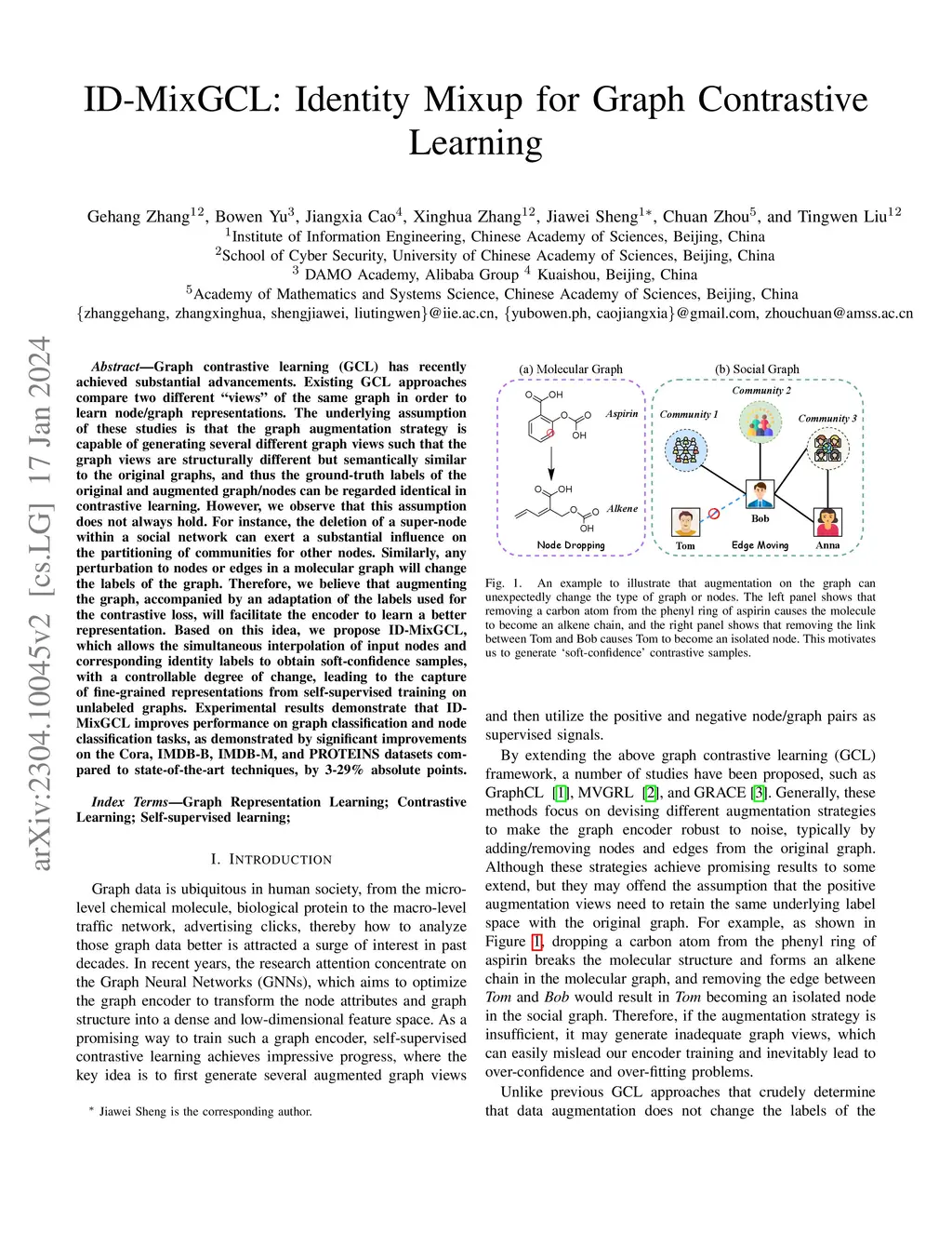 Graph contrastive learning (GCL) has recently achieved substantial advancements. Existing GCL approaches compare two different ``views'' of the same graph in order to learn node/graph representations. The underlying assumption of these studies is that the graph augmentation strategy is capable of generating several different graph views such that the graph views are structurally different but semantically similar to the original graphs, and thus the ground-truth labels of the original and augmented graph/nodes can be regarded identical in contrastive learning. However, we observe that this assumption does not always hold. For instance, the deletion of a super-node within a social network can exert a substantial influence on the partitioning of communities for other nodes. Similarly, any perturbation to nodes or edges in a molecular graph will change the labels of the graph. Therefore, we believe that augmenting the graph, accompanied by an adaptation of the labels used for the contrastive loss, will facilitate the encoder to learn a better representation. Based on this idea, we propose ID-MixGCL, which allows the simultaneous interpolation of input nodes and corresponding identity labels to obtain soft-confidence samples, with a controllable degree of change, leading to the capture of fine-grained representations from self-supervised training on unlabeled graphs. Experimental results demonstrate that ID-MixGCL improves performance on graph classification and node classification tasks, as demonstrated by significant improvements on the Cora, IMDB-B, IMDB-M, and PROTEINS datasets compared to state-of-the-art techniques, by 3-29% absolute points.