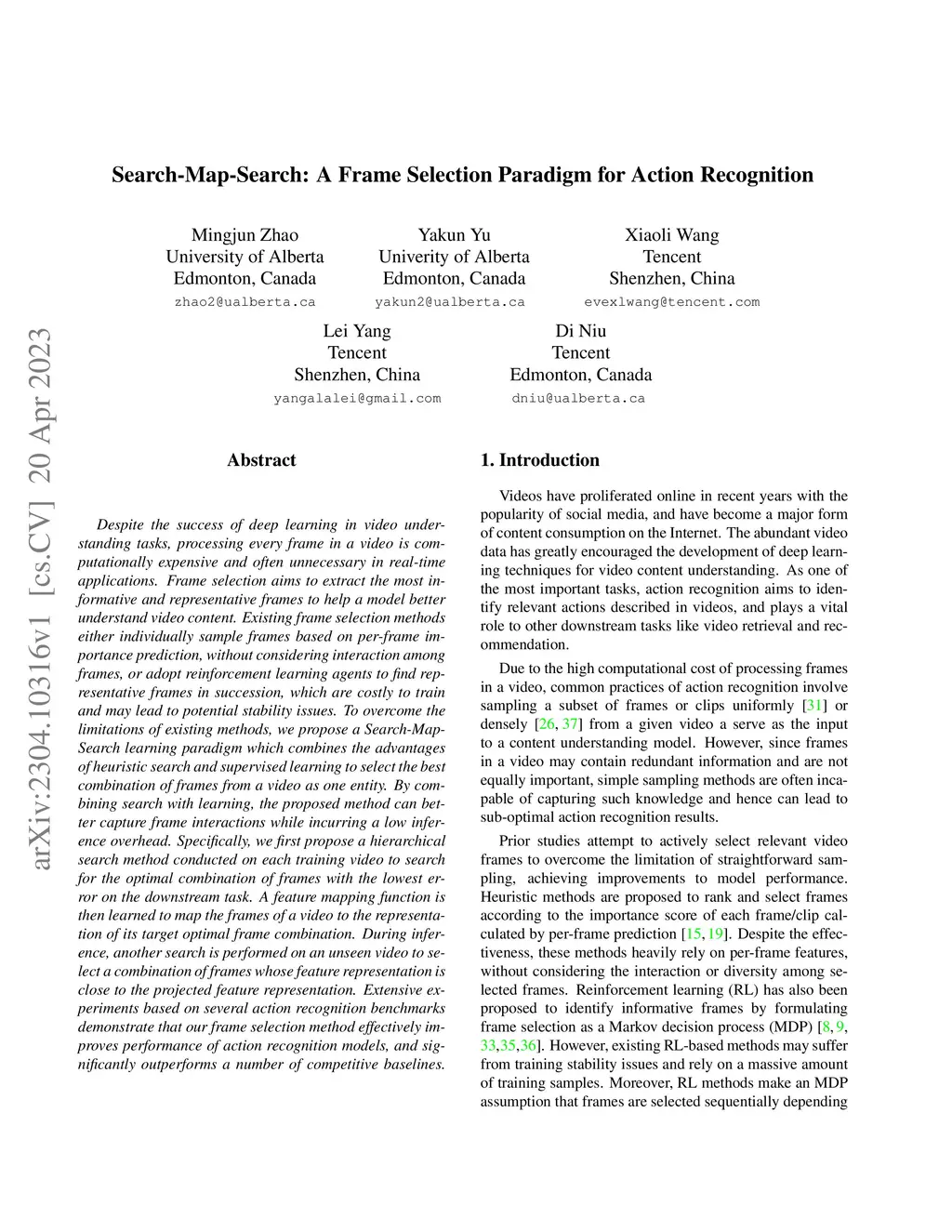 Search-Map-Search: A Frame Selection Paradigm for Action Recognition