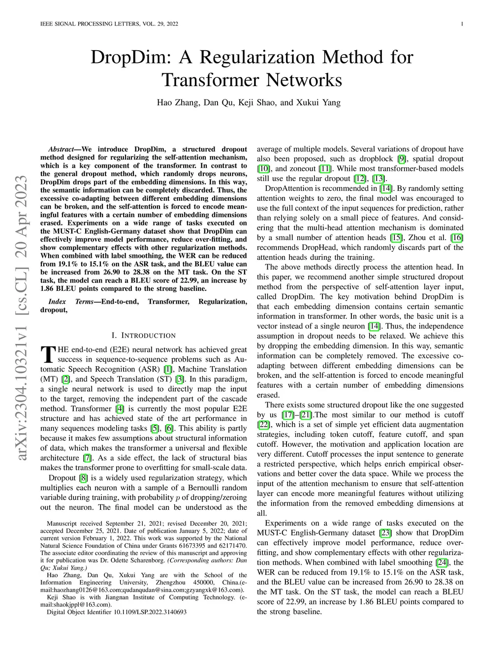 DropDim: A Regularization Method for Transformer Networks