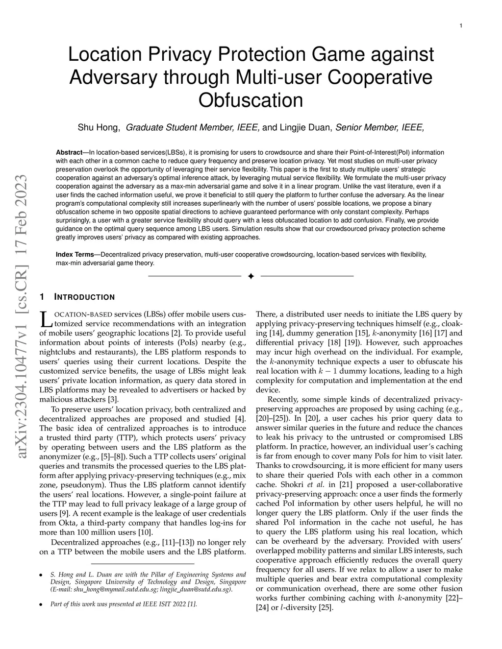 Location Privacy Protection Game against Adversary through Multi-user