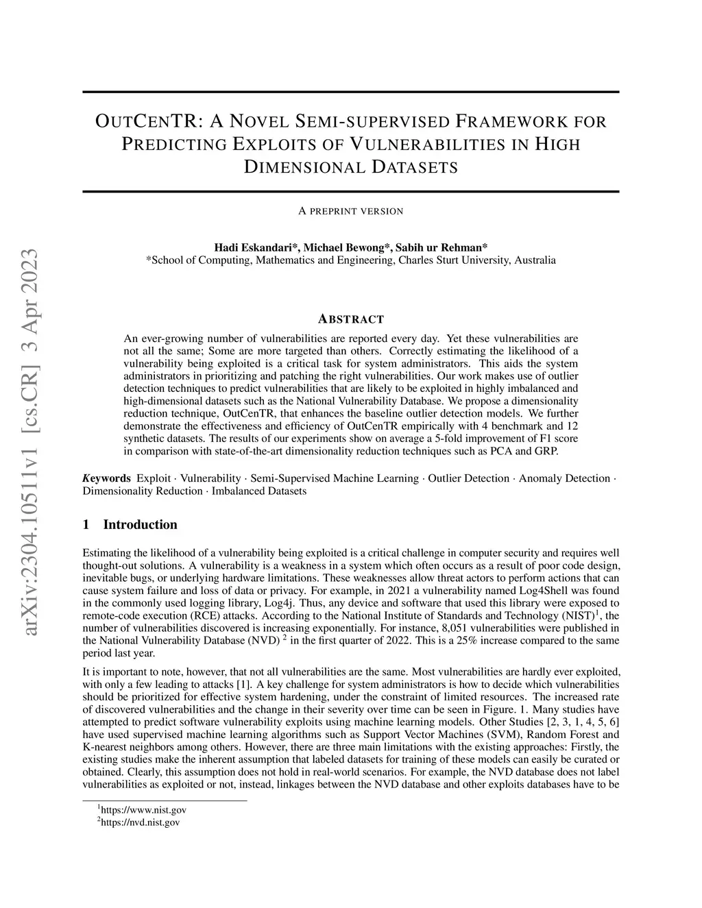 OutCenTR: A novel semi-supervised framework for predicting exploits of