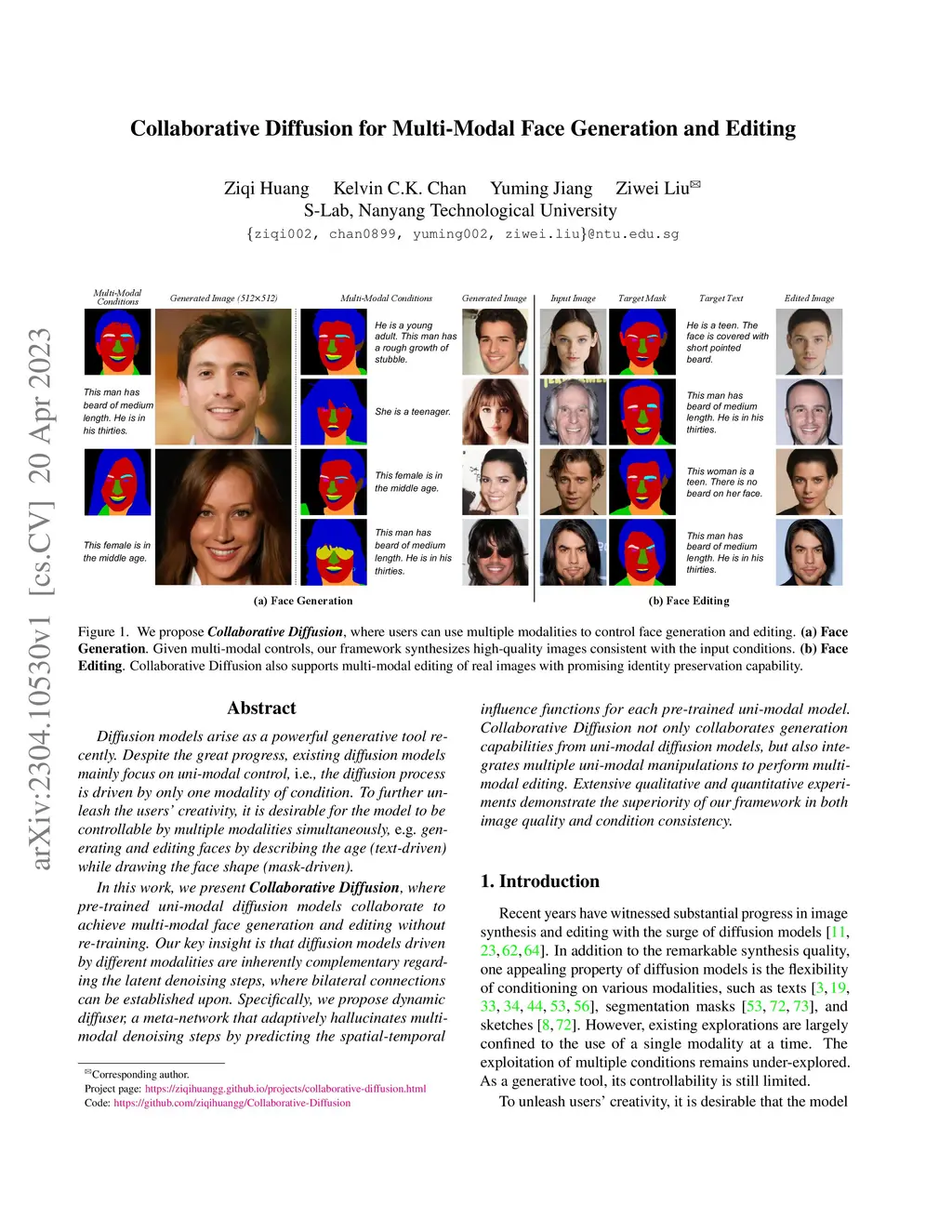 Collaborative Diffusion for Multi-Modal Face Generation and Editing