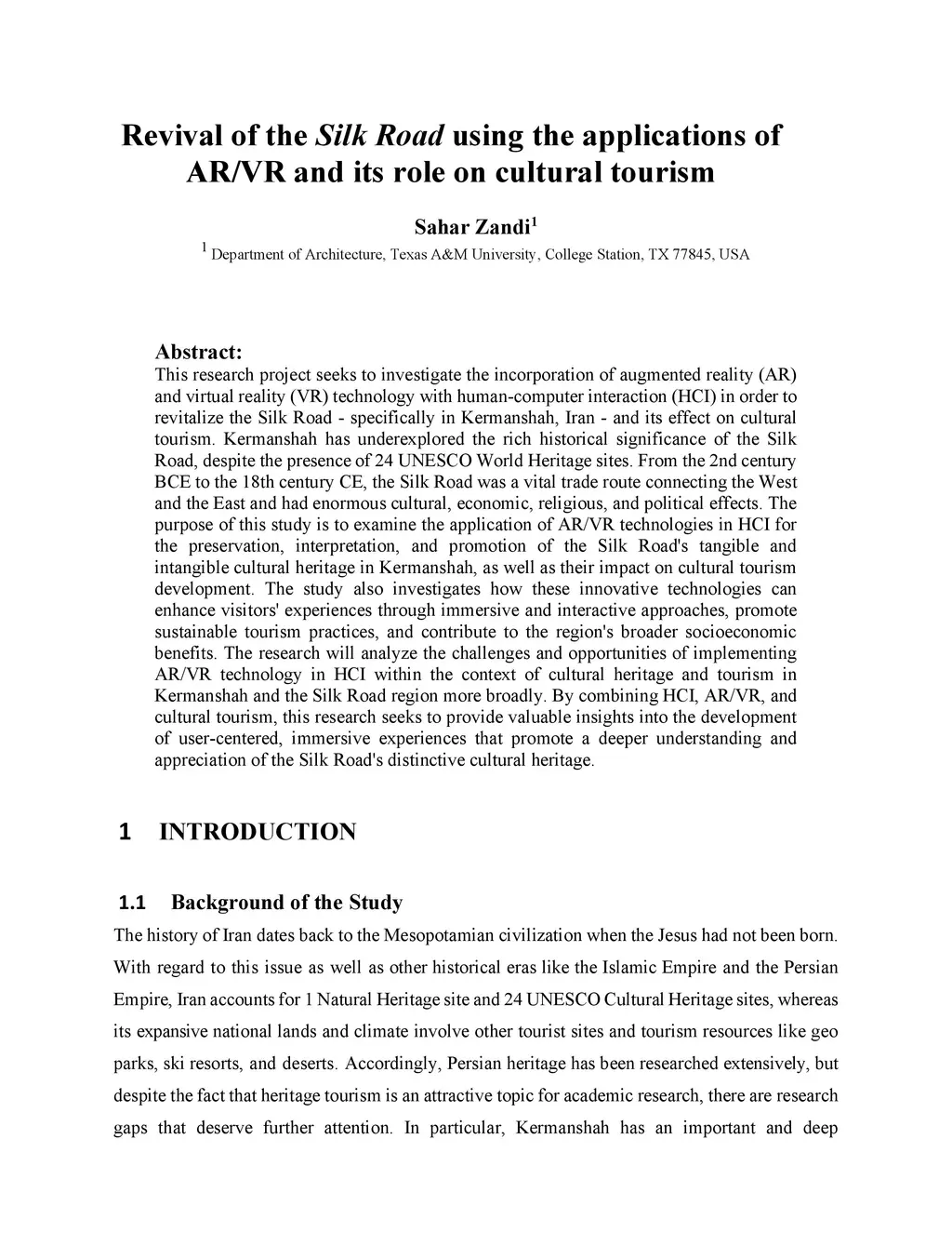 This research project seeks to investigate the incorporation of augmented reality (AR) and virtual reality (VR) technology with human-computer interaction (HCI) in order to revitalize the Silk Road - specifically in Kermanshah, Iran - and its effect on cultural tourism. Kermanshah has underexplored the rich historical significance of the Silk Road, despite the presence of 24 UNESCO World Heritage sites. From the 2nd century BCE to the 18th century CE, the Silk Road was a vital trade route connecting the West and the East and had enormous cultural, economic, religious, and political effects. The purpose of this study is to examine the application of AR/VR technologies in HCI for the preservation, interpretation, and promotion of the Silk Road's tangible and intangible cultural heritage in Kermanshah, as well as their impact on cultural tourism development. The study also investigates how these innovative technologies can enhance visitors' experiences through immersive and interactive approaches, promote sustainable tourism practices, and contribute to the region's broader socioeconomic benefits. The research will analyze the challenges and opportunities of implementing AR/VR technology in HCI within the context of cultural heritage and tourism in Kermanshah and the Silk Road region more broadly. By combining HCI, AR/VR, and cultural tourism, this research seeks to provide valuable insights into the development of user-centered, immersive experiences that promote a deeper understanding and appreciation of the Silk Road's distinctive cultural heritage.