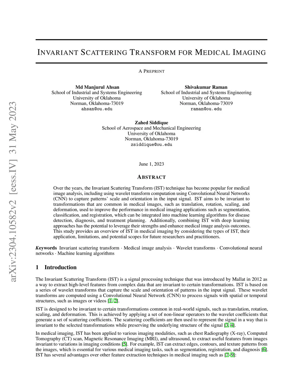 Invariant Scattering Transform for Medical Imaging