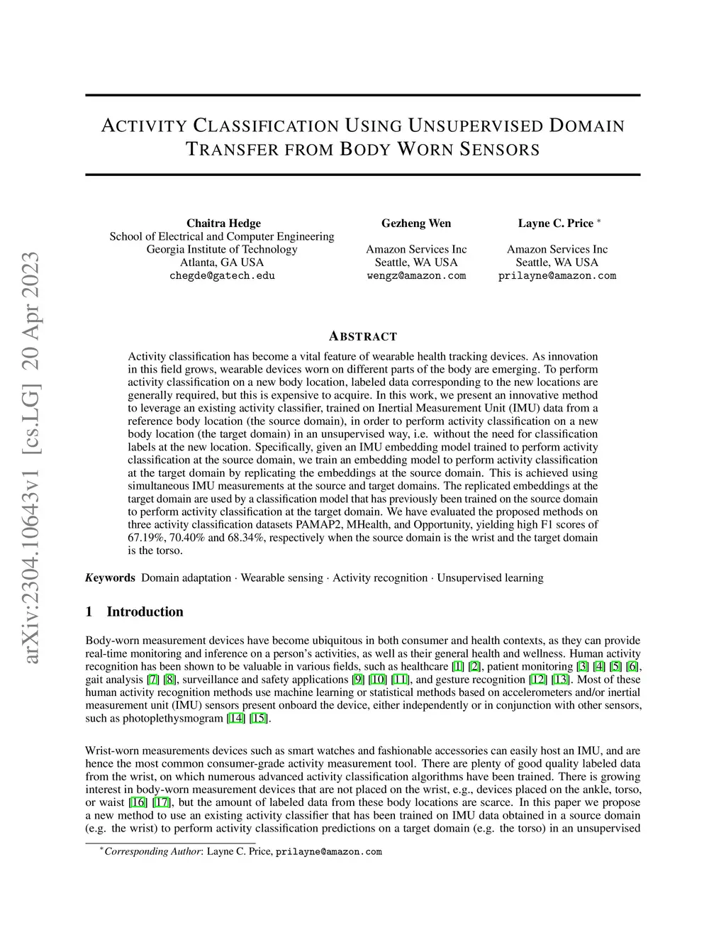 Activity Classification Using Unsupervised Domain Transfer from Body