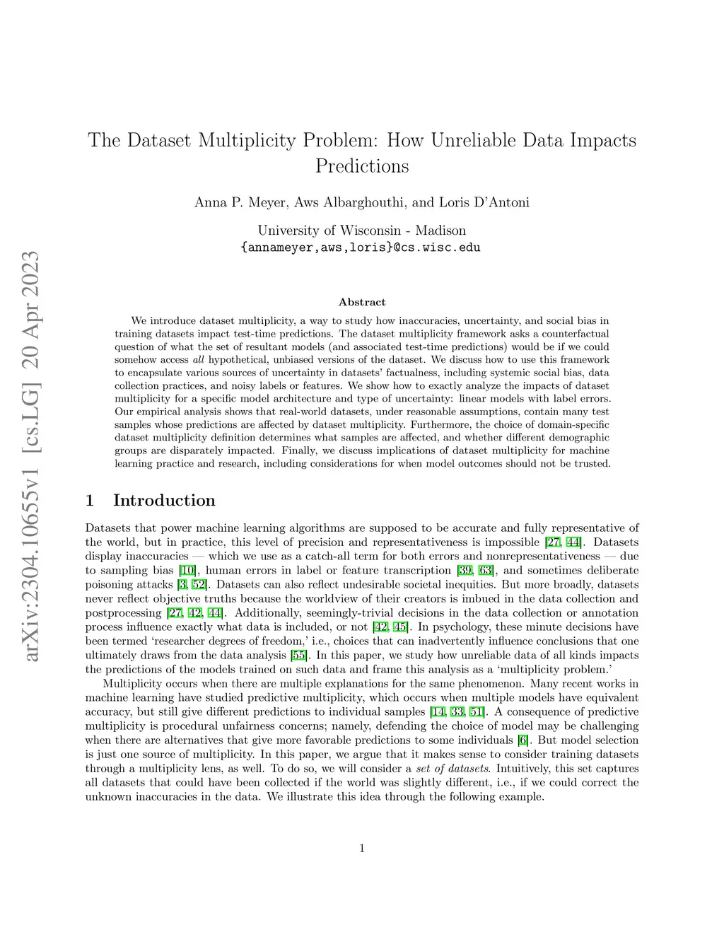 The Dataset Multiplicity Problem: How Unreliable Data Impacts