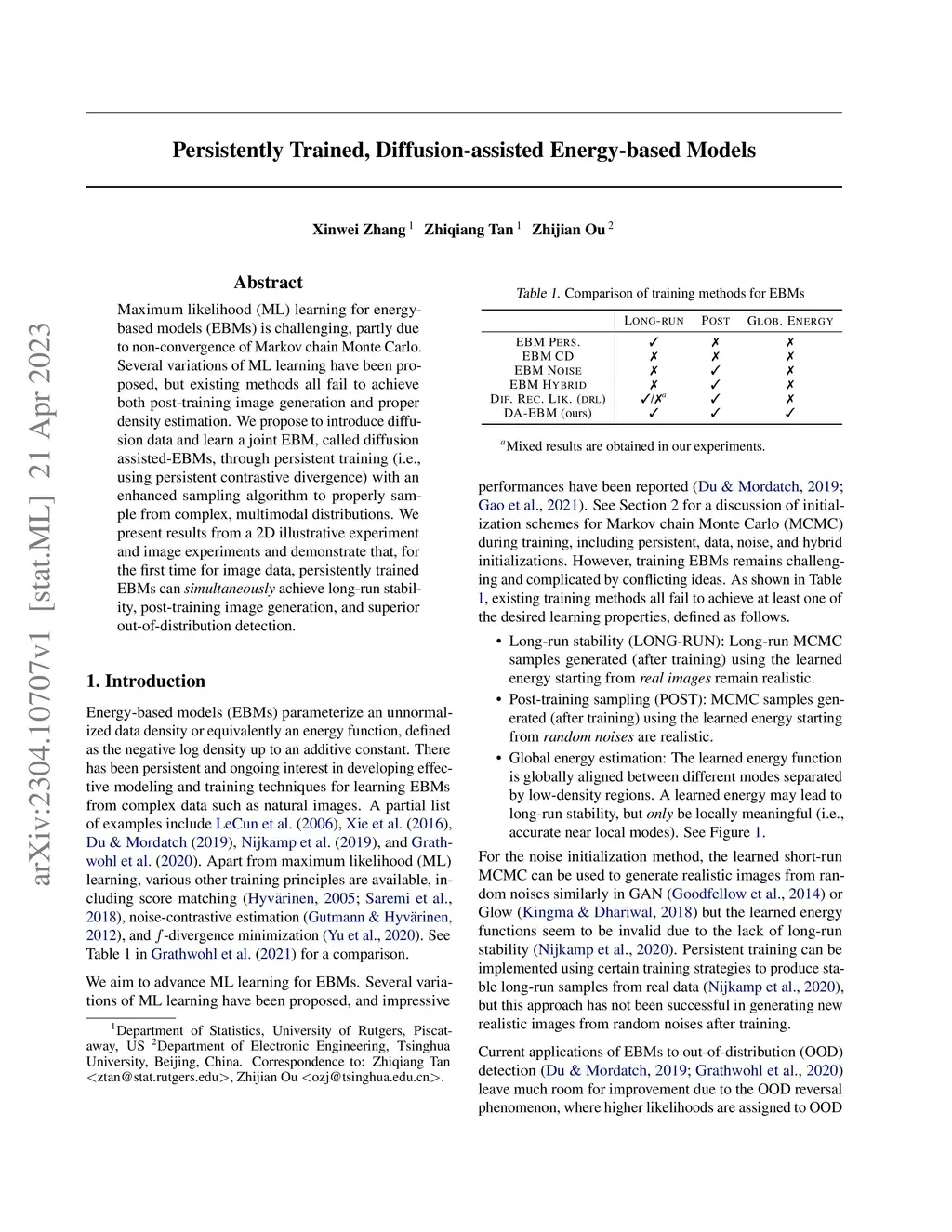 Maximum likelihood (ML) learning for energy-based models (EBMs) is challenging, partly due to non-convergence of Markov chain Monte Carlo.Several variations of ML learning have been proposed, but existing methods all fail to achieve both post-training image generation and proper density estimation. We propose to introduce diffusion data and learn a joint EBM, called diffusion assisted-EBMs, through persistent training (i.e., using persistent contrastive divergence) with an enhanced sampling algorithm to properly sample from complex, multimodal distributions. We present results from a 2D illustrative experiment and image experiments and demonstrate that, for the first time for image data, persistently trained EBMs can {\it simultaneously} achieve long-run stability, post-training image generation, and superior out-of-distribution detection.
