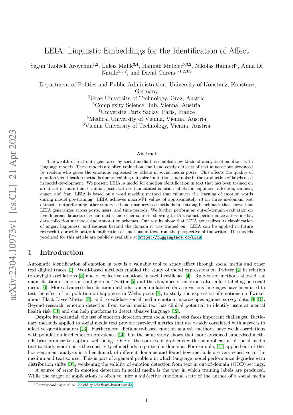 LEIA: Linguistic Embeddings for the Identification of Affect