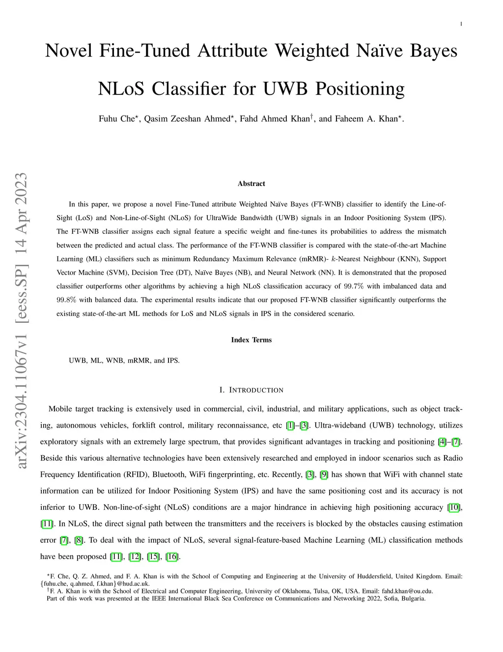 Novel Fine-Tuned Attribute Weighted Naïve Bayes NLoS Classifier for