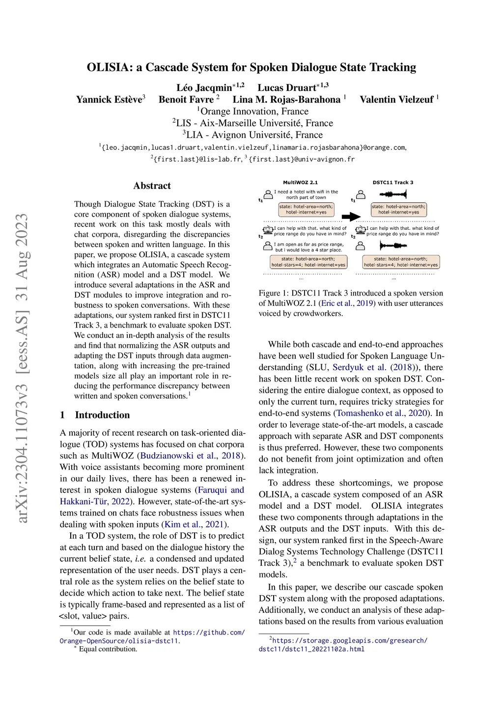 OLISIA: a Cascade System for Spoken Dialogue State Tracking