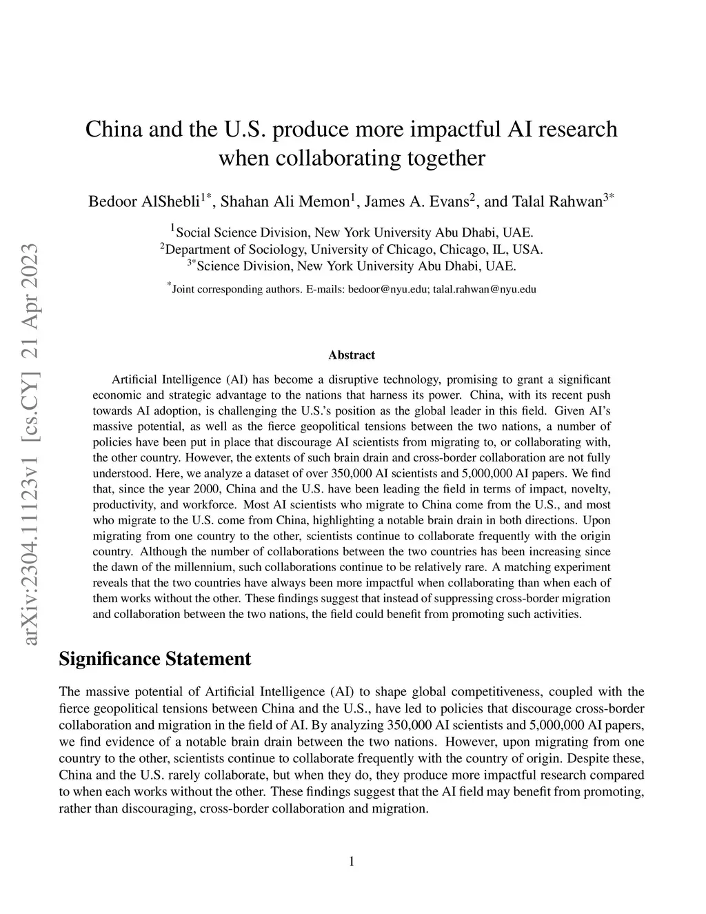 China and the U.S. produce more impactful AI research when collaborating