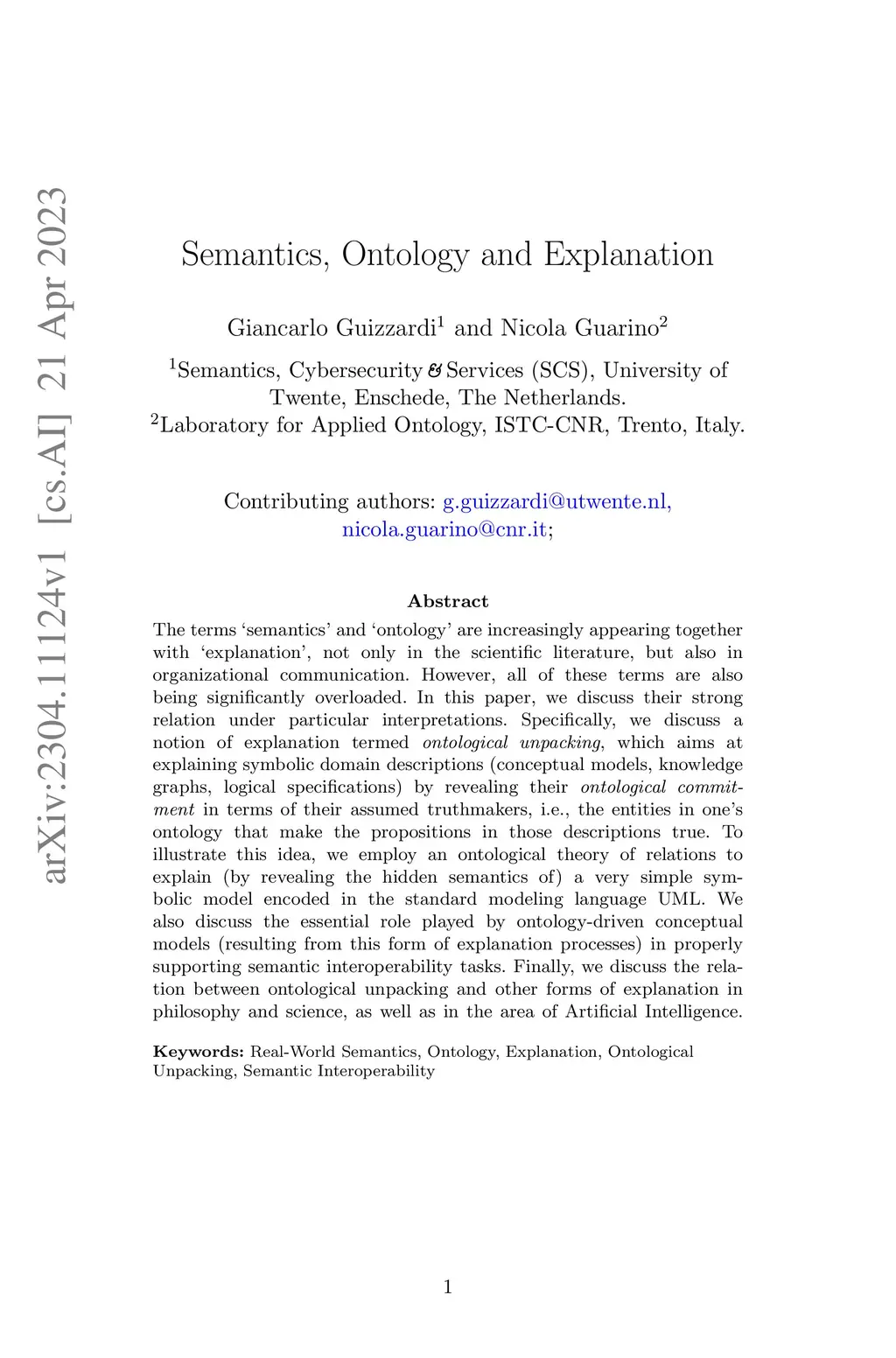 Semantics, Ontology and Explanation