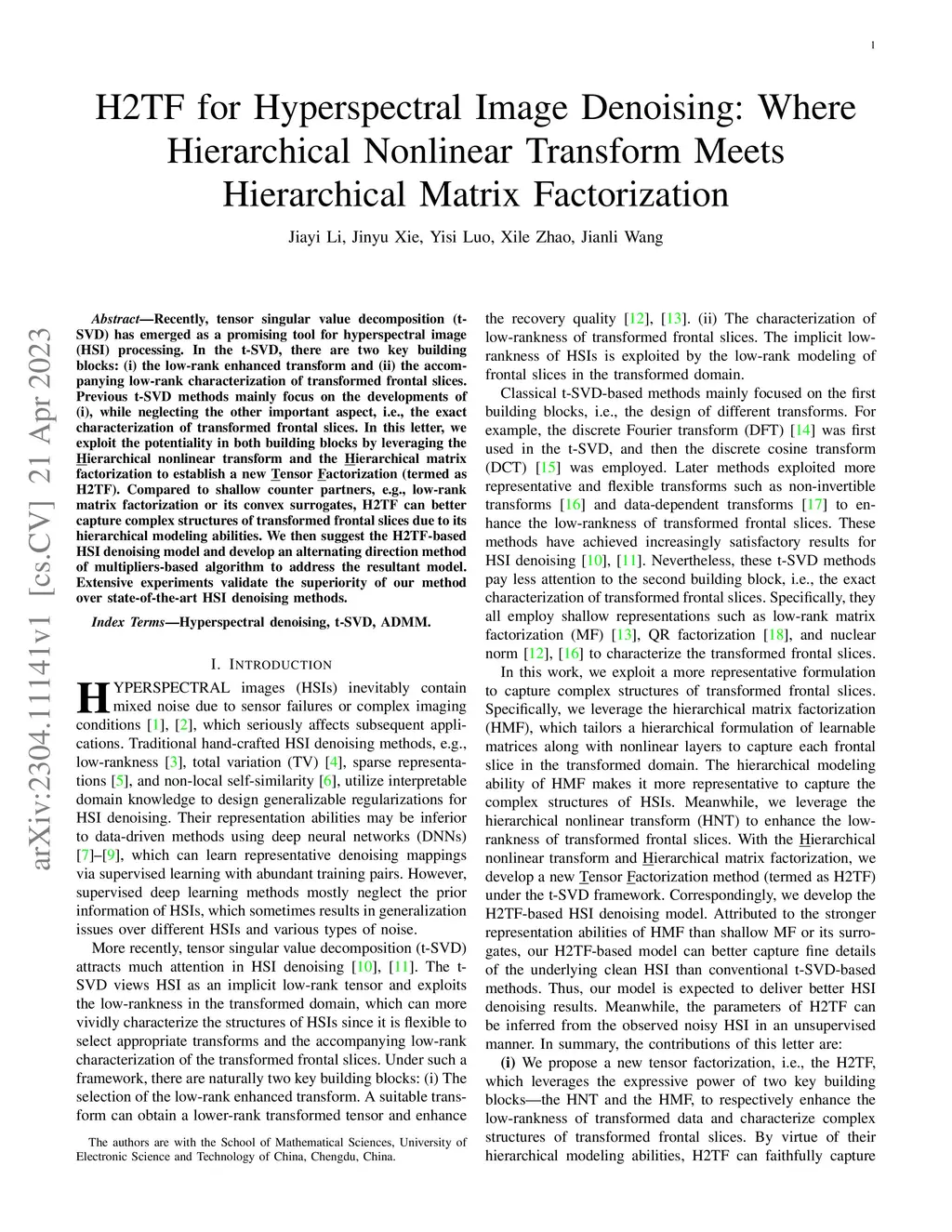 H2TF for Hyperspectral Image Denoising: Where Hierarchical Nonlinear