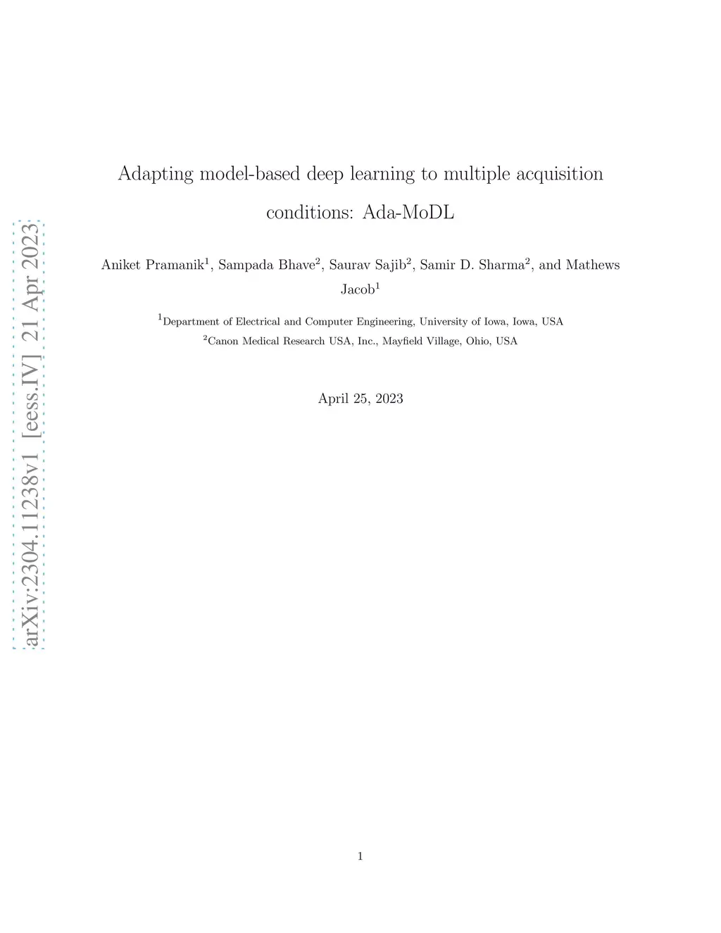 Purpose: The aim of this work is to introduce a single model-based deep network that can provide high-quality reconstructions from undersampled parallel MRI data acquired with multiple sequences, acquisition settings and field strengths. Methods: A single unrolled architecture, which offers good reconstructions for multiple acquisition settings, is introduced. The proposed scheme adapts the model to each setting by scaling the CNN features and the regularization parameter with appropriate weights. The scaling weights and regularization parameter are derived using a multi-layer perceptron model from conditional vectors, which represents the specific acquisition setting. The perceptron parameters and the CNN weights are jointly trained using data from multiple acquisition settings, including differences in field strengths, acceleration, and contrasts. The conditional network is validated using datasets acquired with different acquisition settings. Results: The comparison of the adaptive framework, which trains a single model using the data from all the settings, shows that it can offer consistently improved performance for each acquisition condition. The comparison of the proposed scheme with networks that are trained independently for each acquisition setting shows that it requires less training data per acquisition setting to offer good performance. Conclusion: The Ada-MoDL framework enables the use of a single model-based unrolled network for multiple acquisition settings. In addition to eliminating the need to train and store multiple networks for different acquisition settings, this approach reduces the training data needed for each acquisition setting.