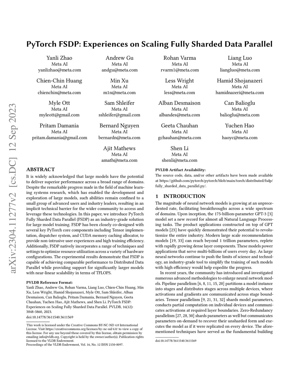 PyTorch FSDP: Experiences on Scaling Fully Sharded Data Parallel