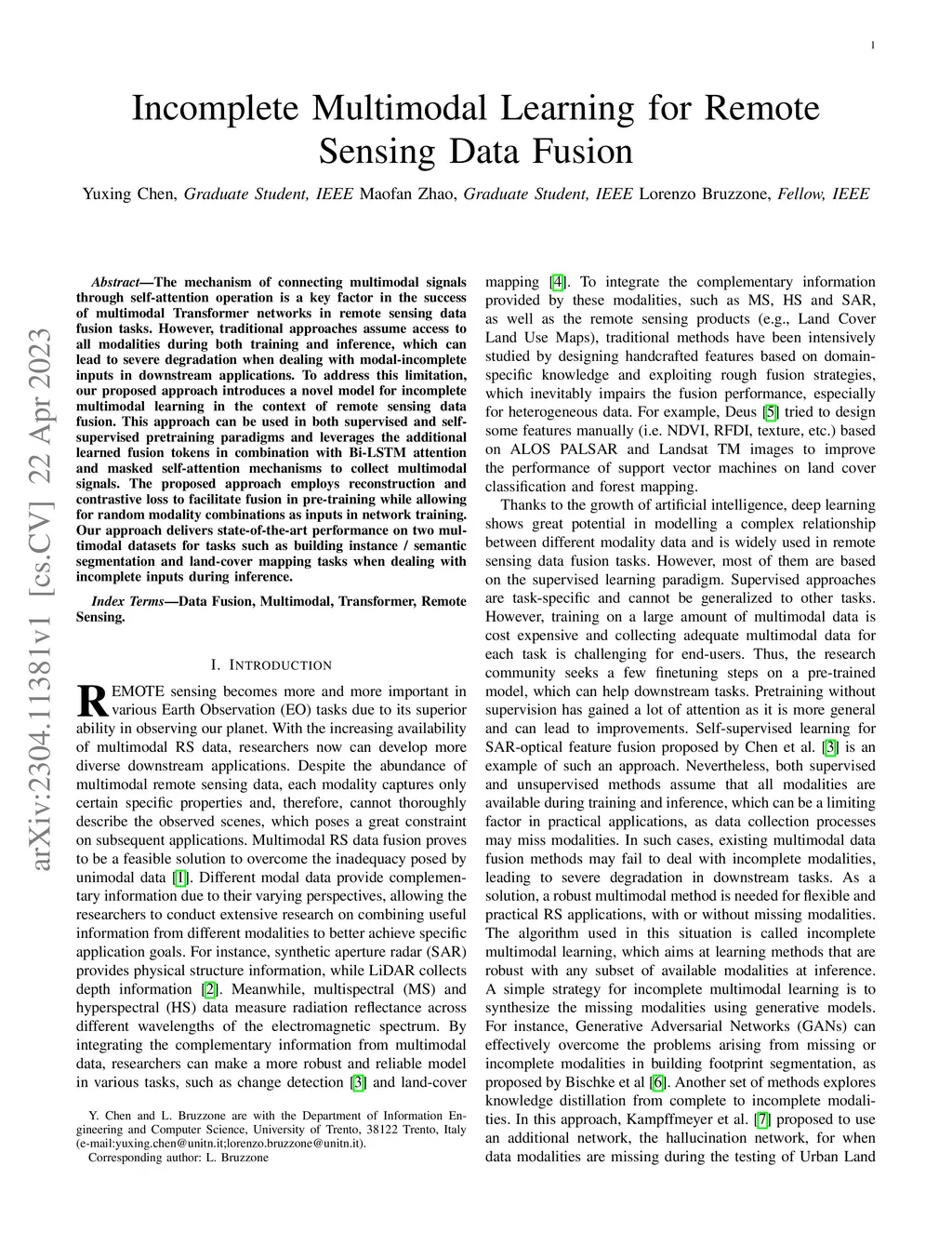 Incomplete Multimodal Learning for Remote Sensing Data Fusion