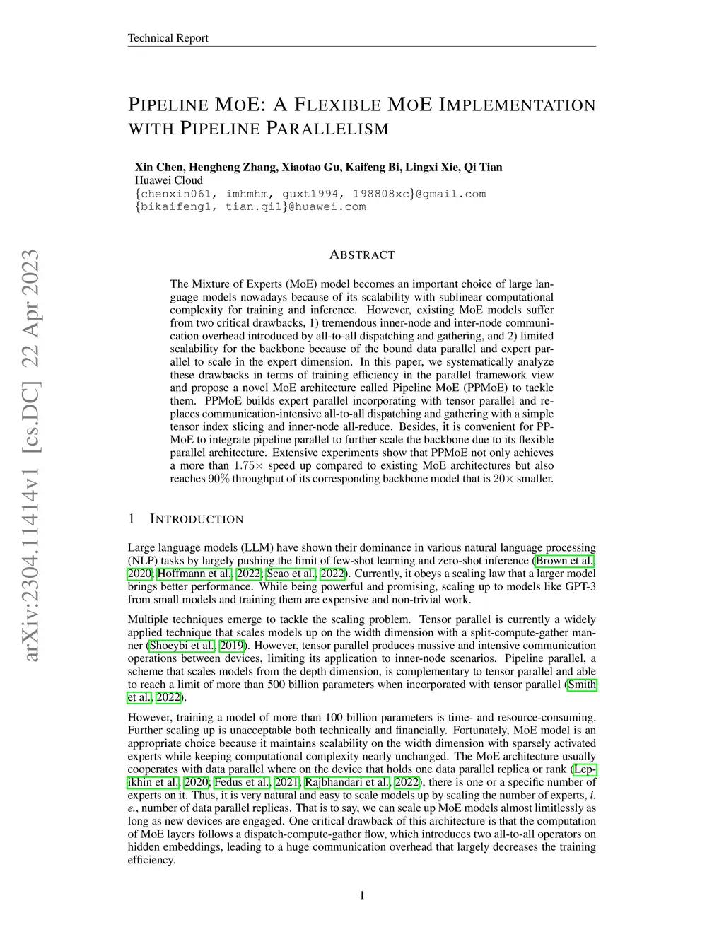The Mixture of Experts (MoE) model becomes an important choice of large language models nowadays because of its scalability with sublinear computational complexity for training and inference. However, existing MoE models suffer from two critical drawbacks, 1) tremendous inner-node and inter-node communication overhead introduced by all-to-all dispatching and gathering, and 2) limited scalability for the backbone because of the bound data parallel and expert parallel to scale in the expert dimension. In this paper, we systematically analyze these drawbacks in terms of training efficiency in the parallel framework view and propose a novel MoE architecture called Pipeline MoE (PPMoE) to tackle them. PPMoE builds expert parallel incorporating with tensor parallel and replaces communication-intensive all-to-all dispatching and gathering with a simple tensor index slicing and inner-node all-reduce. Besides, it is convenient for PPMoE to integrate pipeline parallel to further scale the backbone due to its flexible parallel architecture. Extensive experiments show that PPMoE not only achieves a more than speed up compared to existing MoE architectures but also reaches throughput of its corresponding backbone model that is smaller.