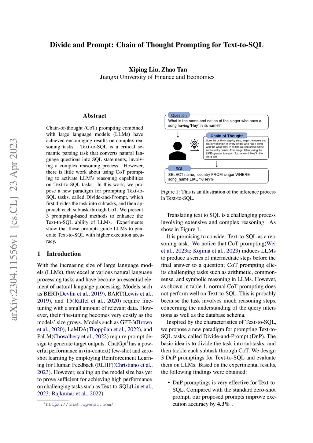 Divide and Prompt: Chain of Thought Prompting for Text-to-SQL