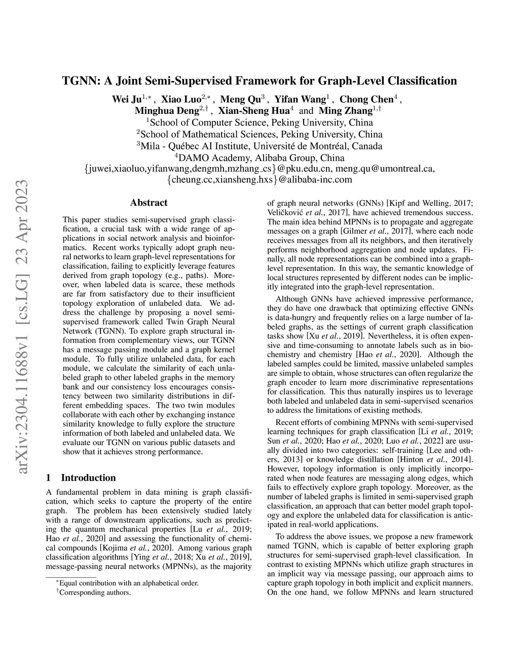 TGNN: A Joint Semi-supervised Framework for Graph-level Classification