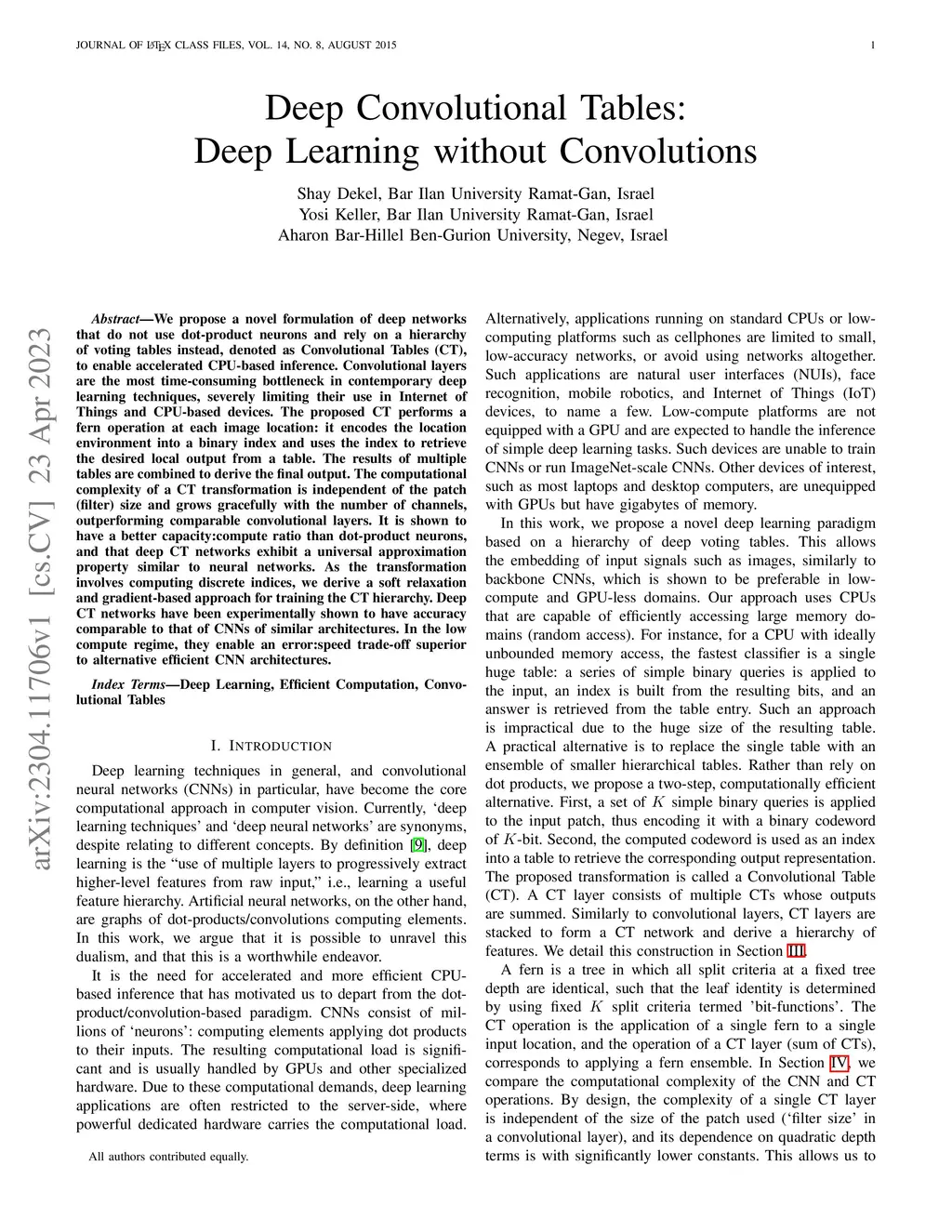 We propose a novel formulation of deep networks that do not use dot-product neurons and rely on a hierarchy of voting tables instead, denoted as Convolutional Tables (CT), to enable accelerated CPU-based inference. Convolutional layers are the most time-consuming bottleneck in contemporary deep learning techniques, severely limiting their use in Internet of Things and CPU-based devices. The proposed CT performs a fern operation at each image location: it encodes the location environment into a binary index and uses the index to retrieve the desired local output from a table. The results of multiple tables are combined to derive the final output. The computational complexity of a CT transformation is independent of the patch (filter) size and grows gracefully with the number of channels, outperforming comparable convolutional layers. It is shown to have a better capacity:compute ratio than dot-product neurons, and that deep CT networks exhibit a universal approximation property similar to neural networks. As the transformation involves computing discrete indices, we derive a soft relaxation and gradient-based approach for training the CT hierarchy. Deep CT networks have been experimentally shown to have accuracy comparable to that of CNNs of similar architectures. In the low compute regime, they enable an error:speed trade-off superior to alternative efficient CNN architectures.