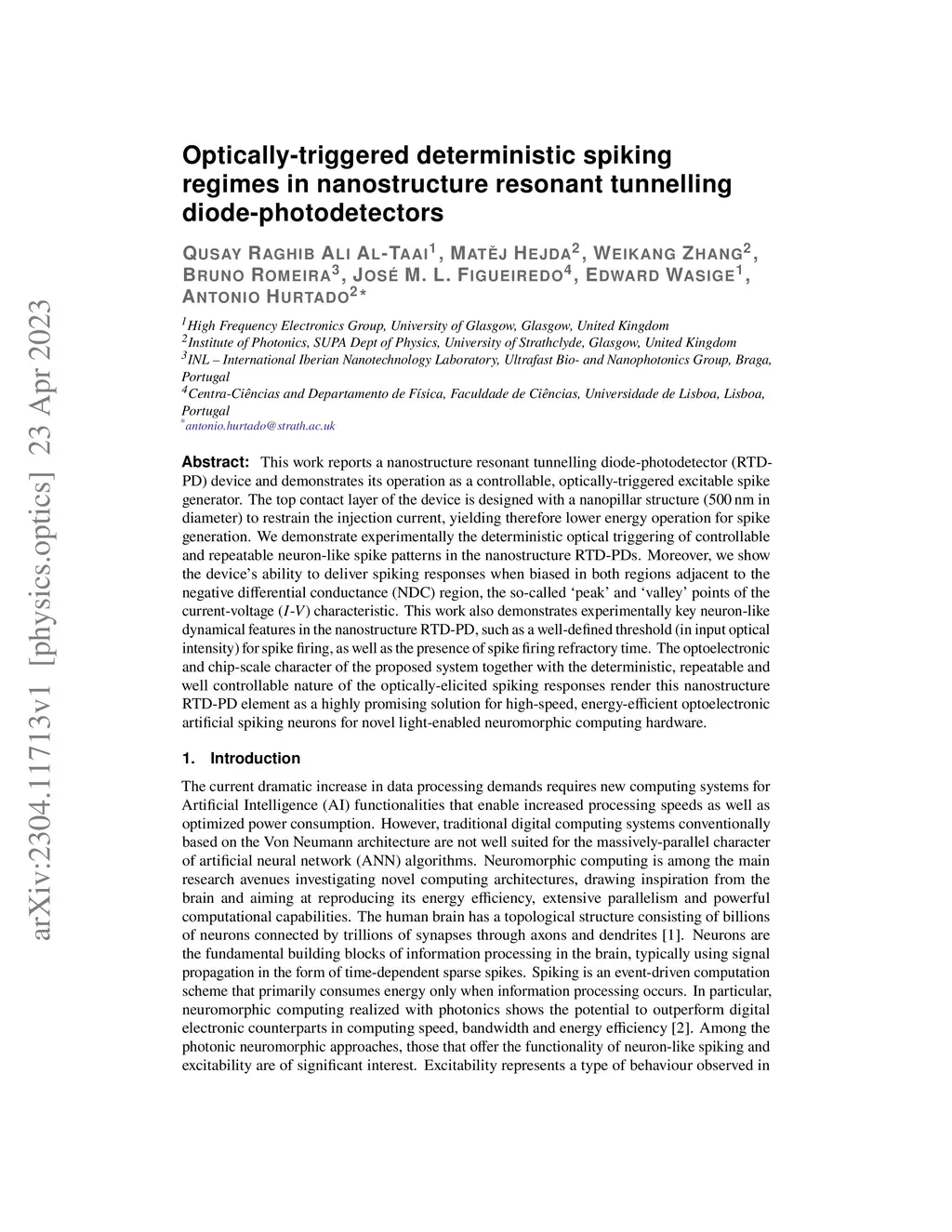 resonant tunnelling diode-photodetectors