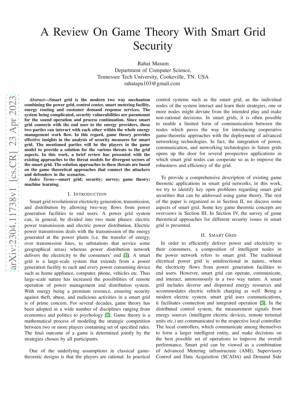 A Review On Game Theory With Smart Grid Security