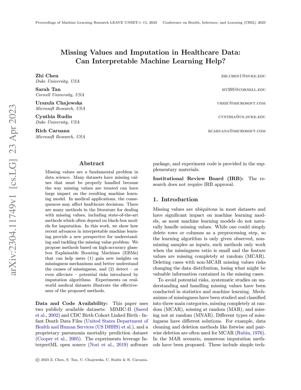 Missing Values and Imputation in Healthcare Data: Can Interpretable