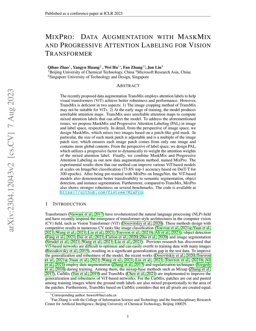 MixPro: Data Augmentation with MaskMix and Progressive Attention