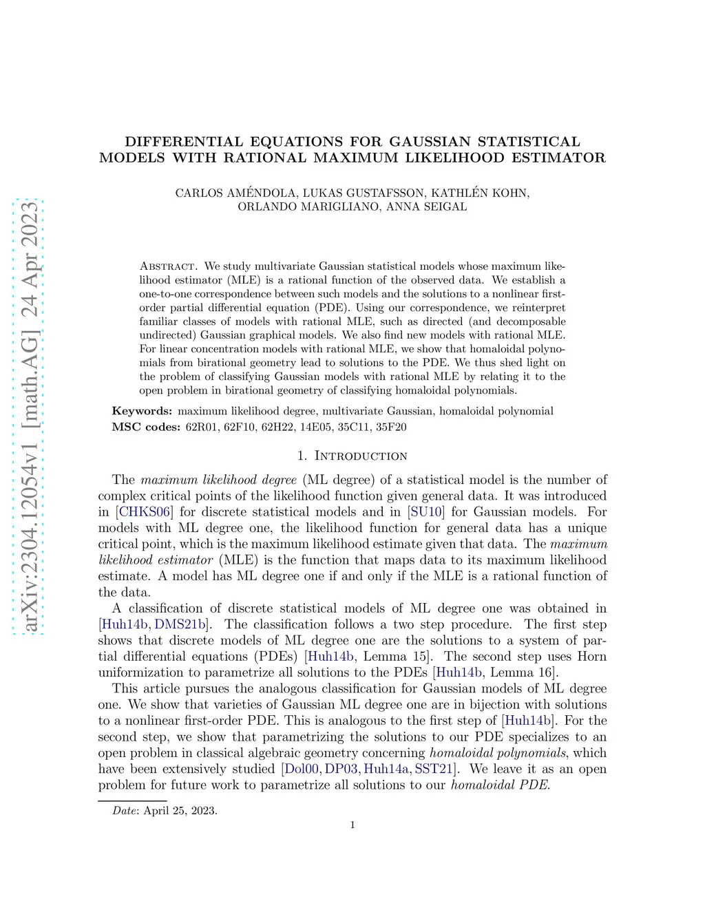 We study multivariate Gaussian statistical models whose maximum likelihood estimator (MLE) is a rational function of the observed data. We establish a one-to-one correspondence between such models and the solutions to a nonlinear first-order partial differential equation (PDE). Using our correspondence, we reinterpret familiar classes of models with rational MLE, such as directed (and decomposable undirected) Gaussian graphical models. We also find new models with rational MLE. For linear concentration models with rational MLE, we show that homaloidal polynomials from birational geometry lead to solutions to the PDE. We thus shed light on the problem of classifying Gaussian models with rational MLE by relating it to the open problem in birational geometry of classifying homaloidal polynomials.