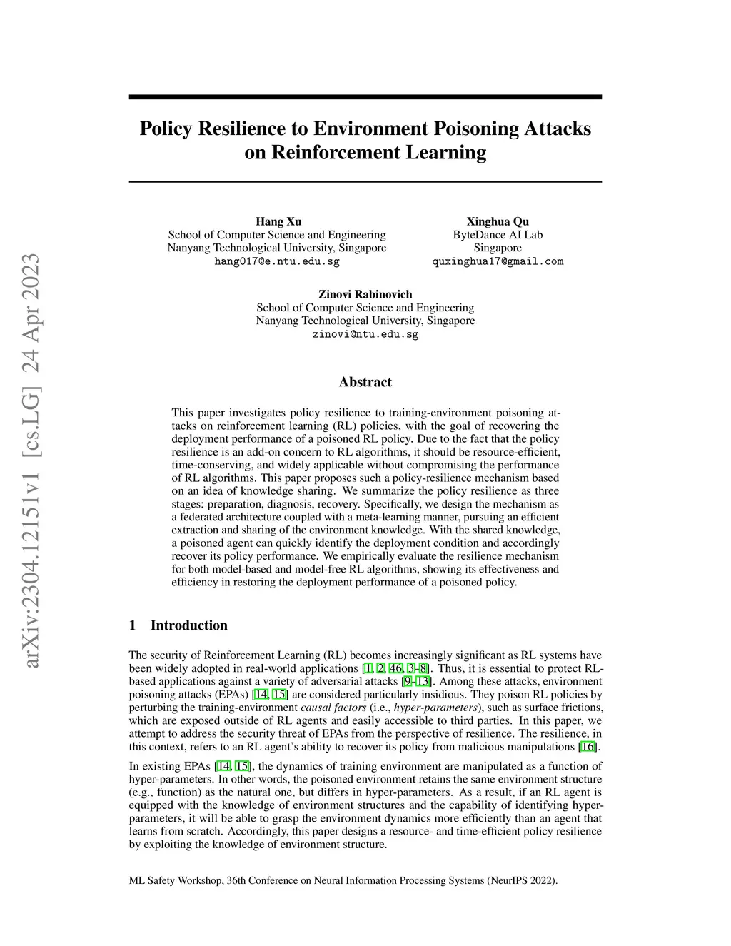 This paper investigates policy resilience to training-environment poisoning attacks on reinforcement learning (RL) policies, with the goal of recovering the deployment performance of a poisoned RL policy. Due to the fact that the policy resilience is an add-on concern to RL algorithms, it should be resource-efficient, time-conserving, and widely applicable without compromising the performance of RL algorithms. This paper proposes such a policy-resilience mechanism based on an idea of knowledge sharing. We summarize the policy resilience as three stages: preparation, diagnosis, recovery. Specifically, we design the mechanism as a federated architecture coupled with a meta-learning manner, pursuing an efficient extraction and sharing of the environment knowledge. With the shared knowledge, a poisoned agent can quickly identify the deployment condition and accordingly recover its policy performance. We empirically evaluate the resilience mechanism for both model-based and model-free RL algorithms, showing its effectiveness and efficiency in restoring the deployment performance of a poisoned policy.