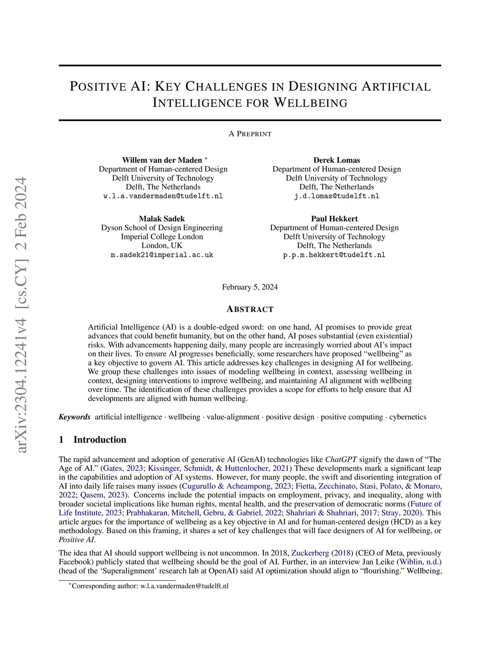 Positive AI: Key Challenges in Designing Artificial Intelligence for