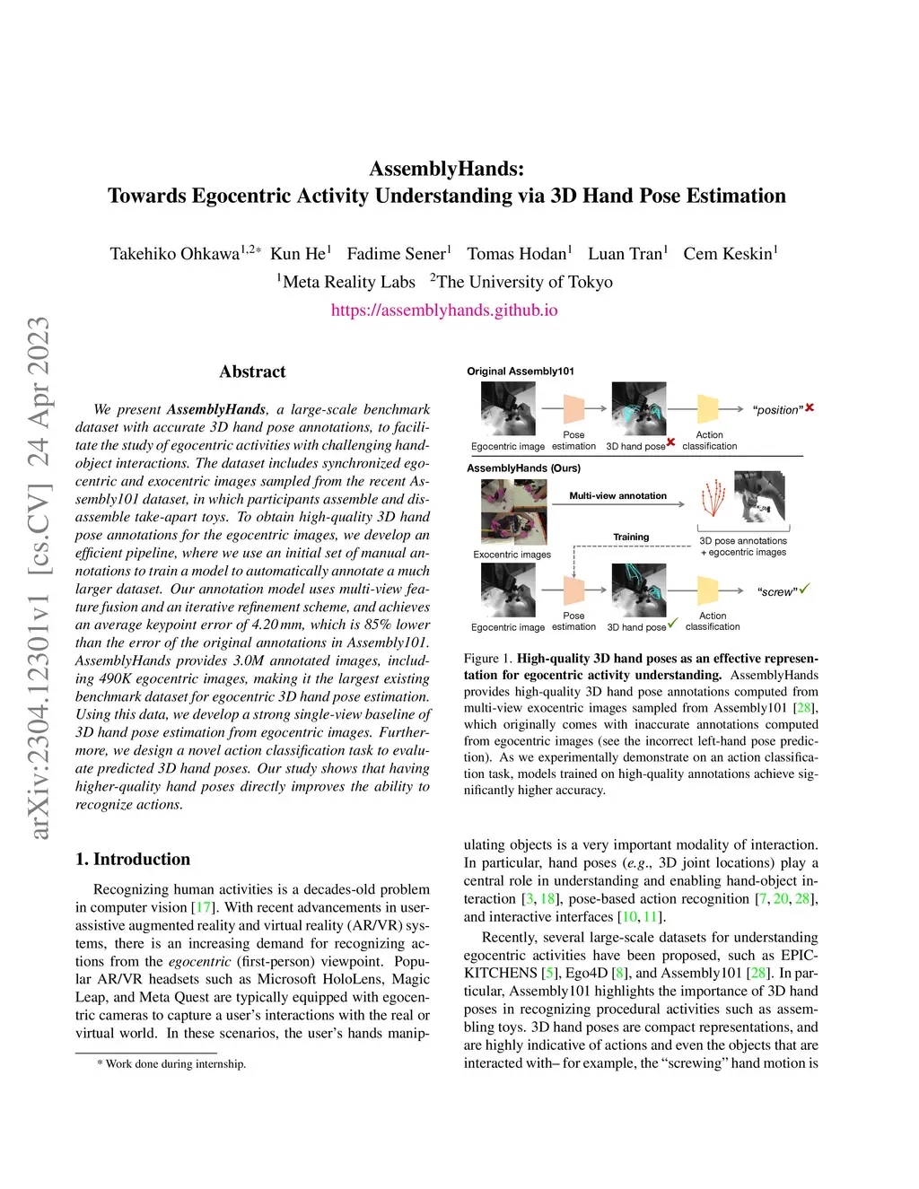 AssemblyHands: Towards Egocentric Activity Understanding via 3D Hand