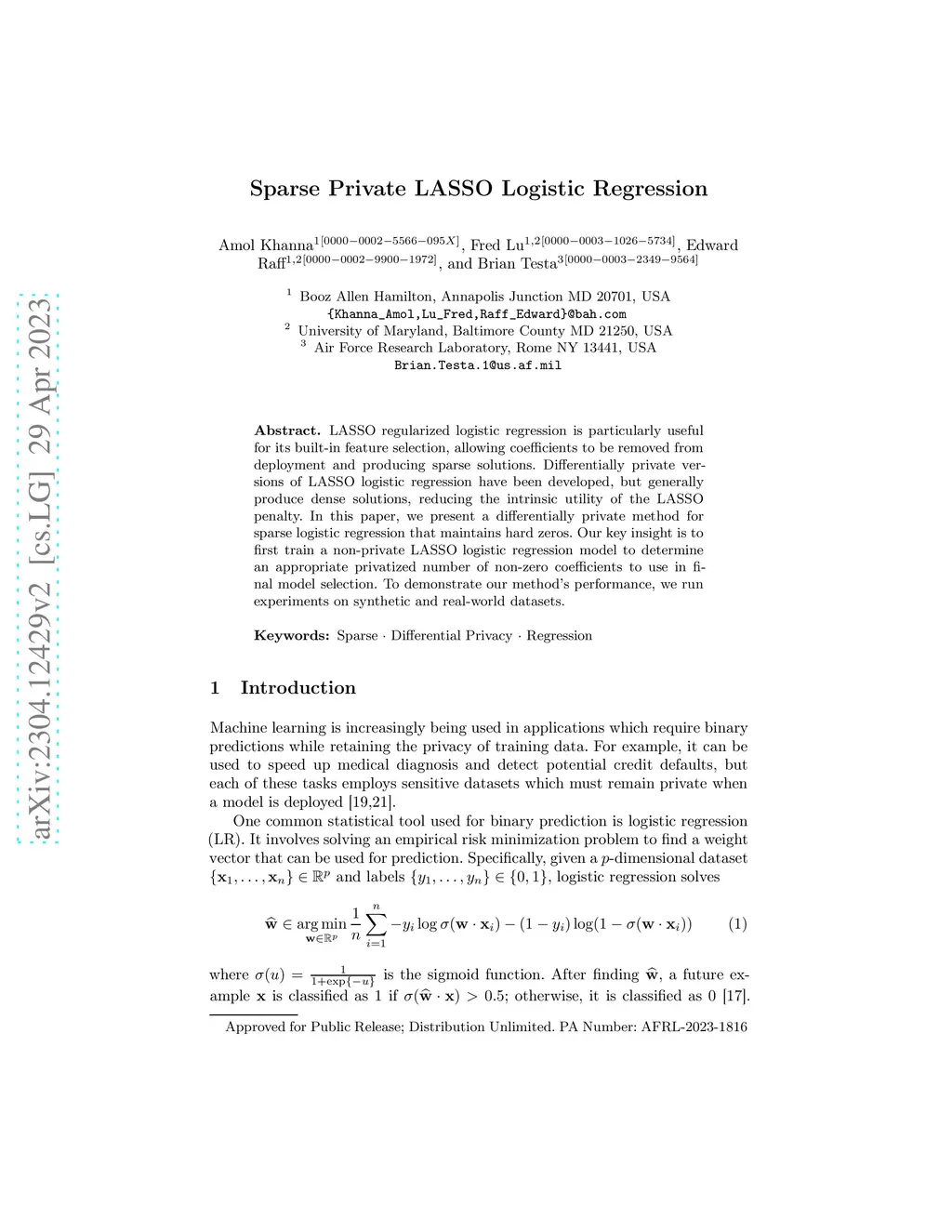 Sparse Private LASSO Logistic Regression