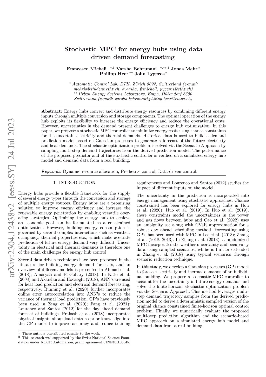 Stochastic MPC for energy hubs using data driven demand forecasting