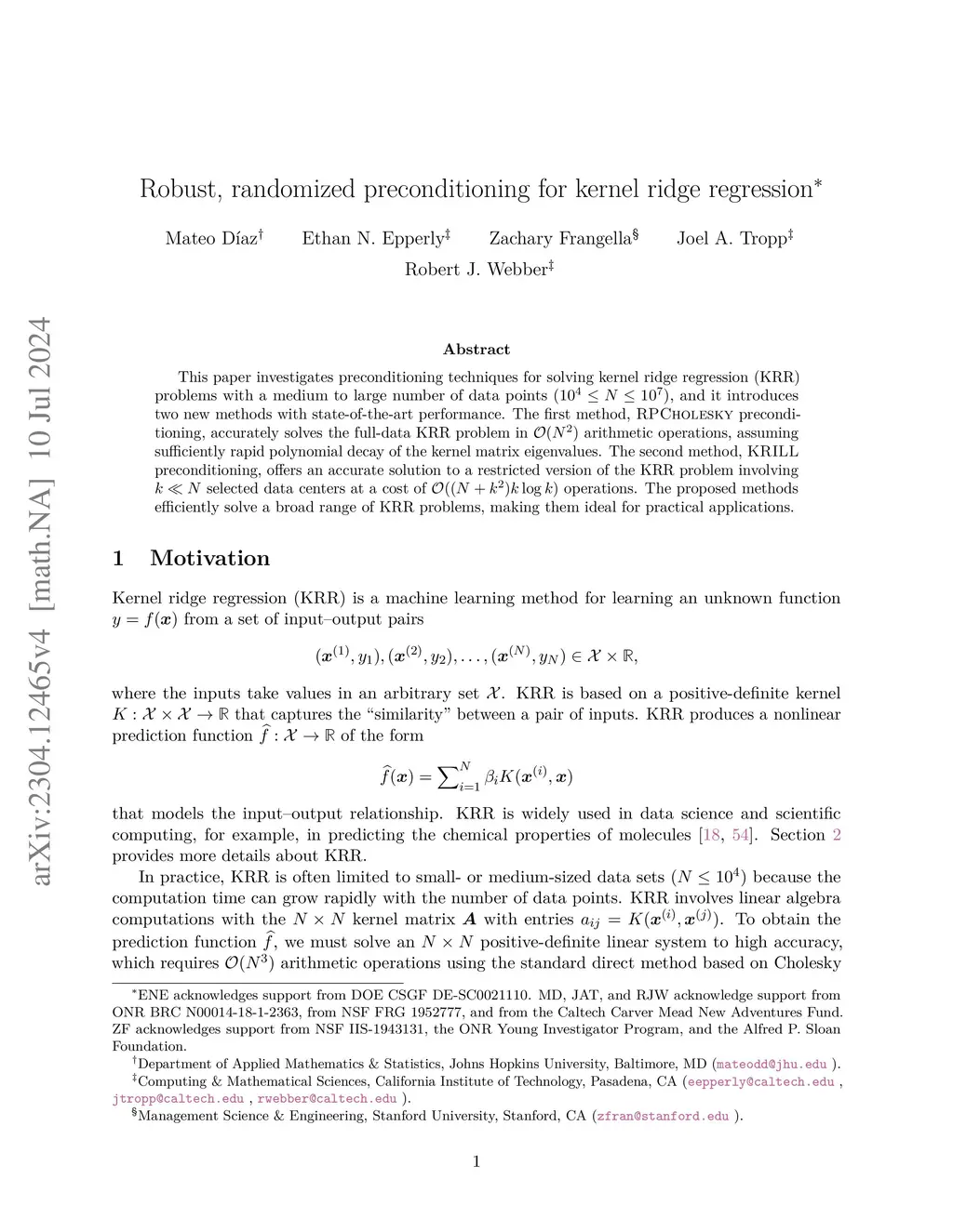 Robust, randomized preconditioning for kernel ridge regression
