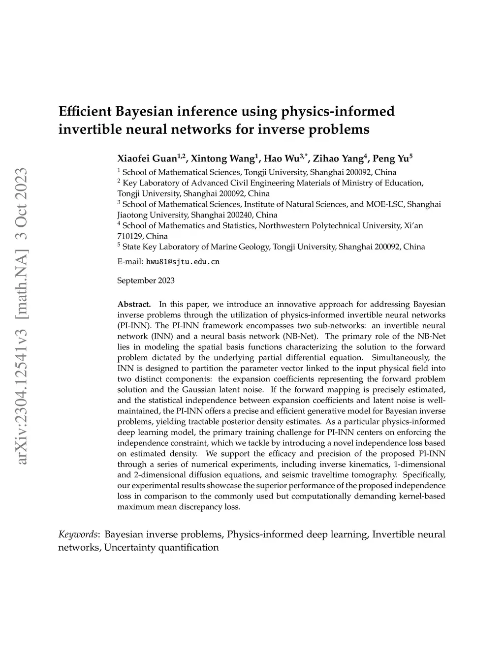 Efficient Bayesian inference using physics-informed invertible neural