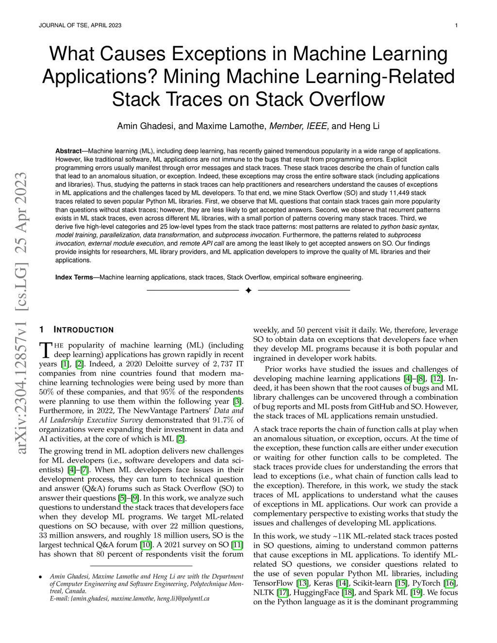 What Causes Exceptions in Machine Learning Applications? Mining Machine