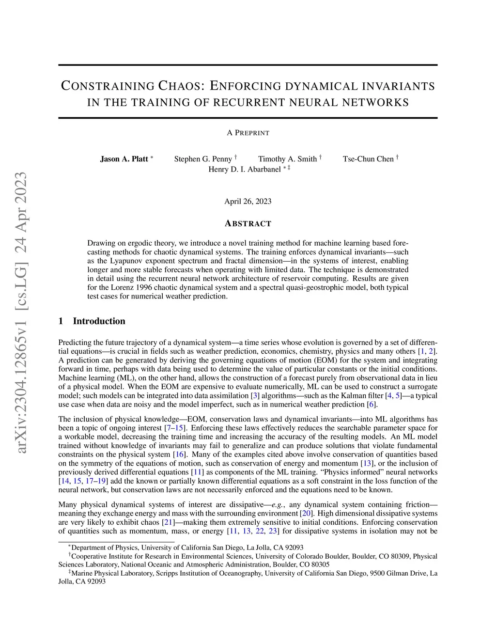 Constraining Chaos: Enforcing dynamical invariants in the training of