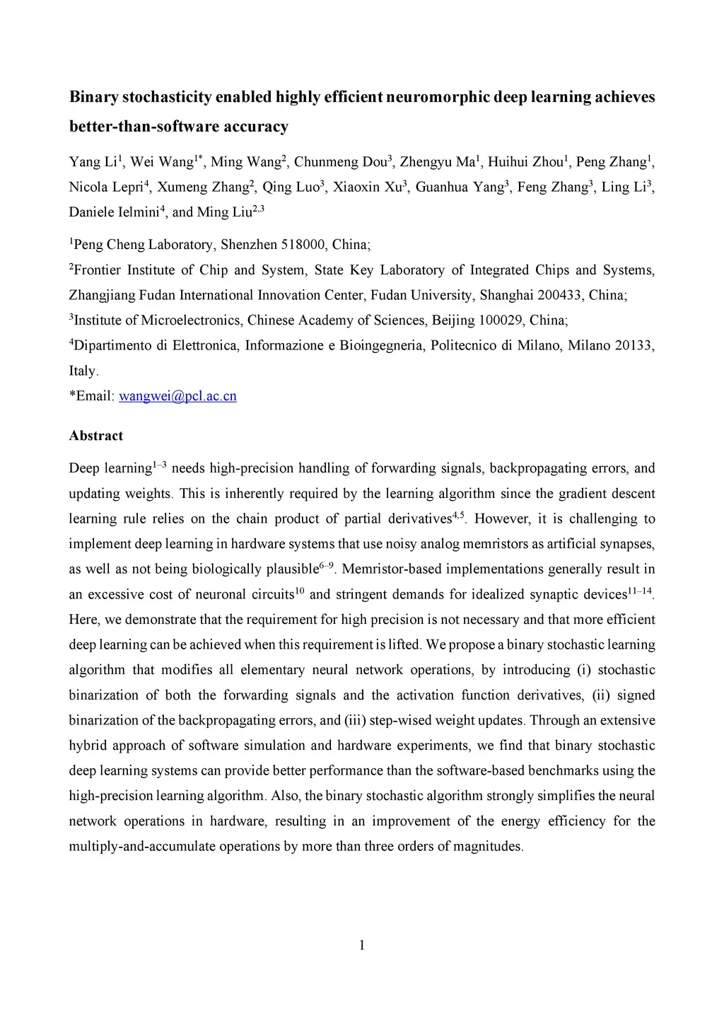 Binary stochasticity enabled highly efficient neuromorphic deep learning