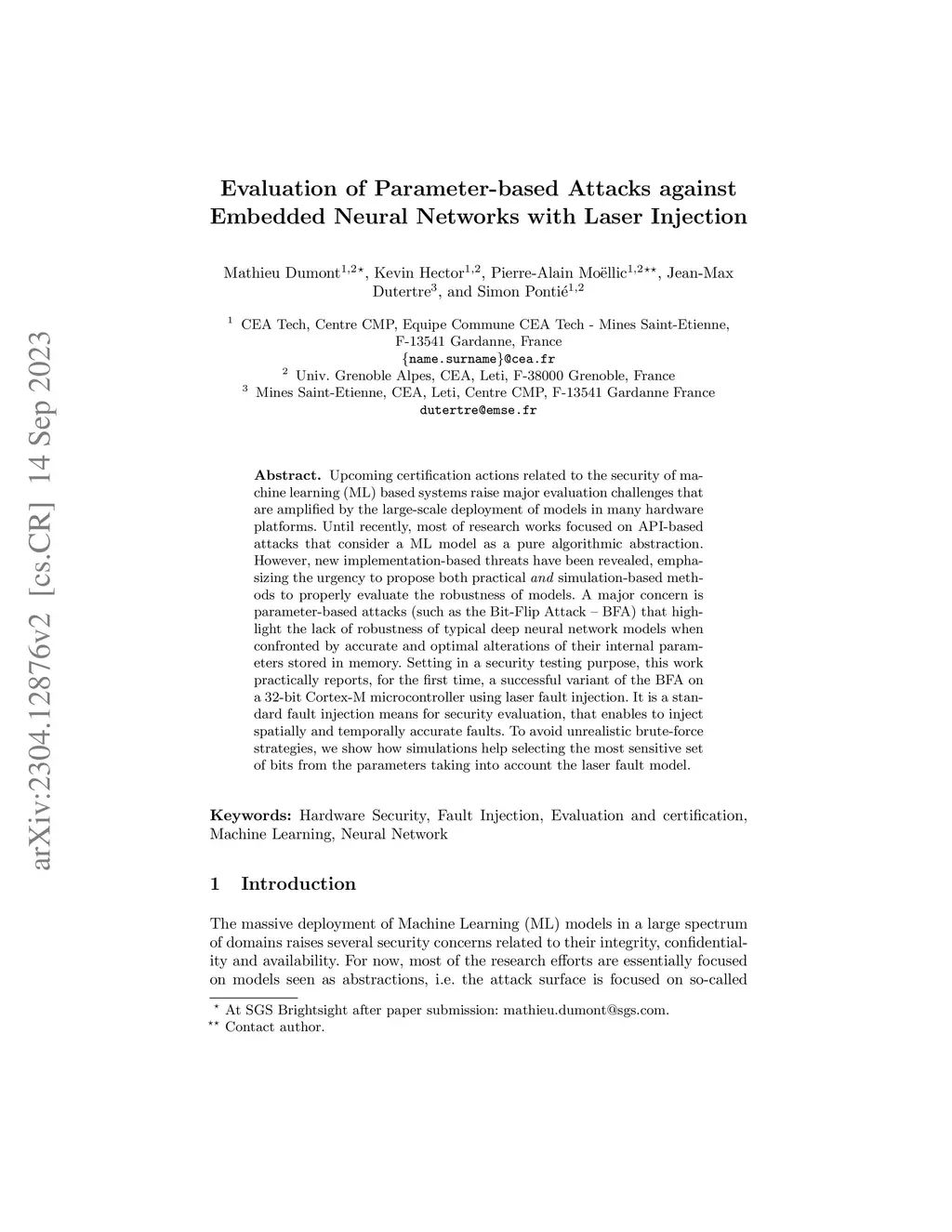 Evaluation of Parameter-based Attacks against Embedded Neural Networks
