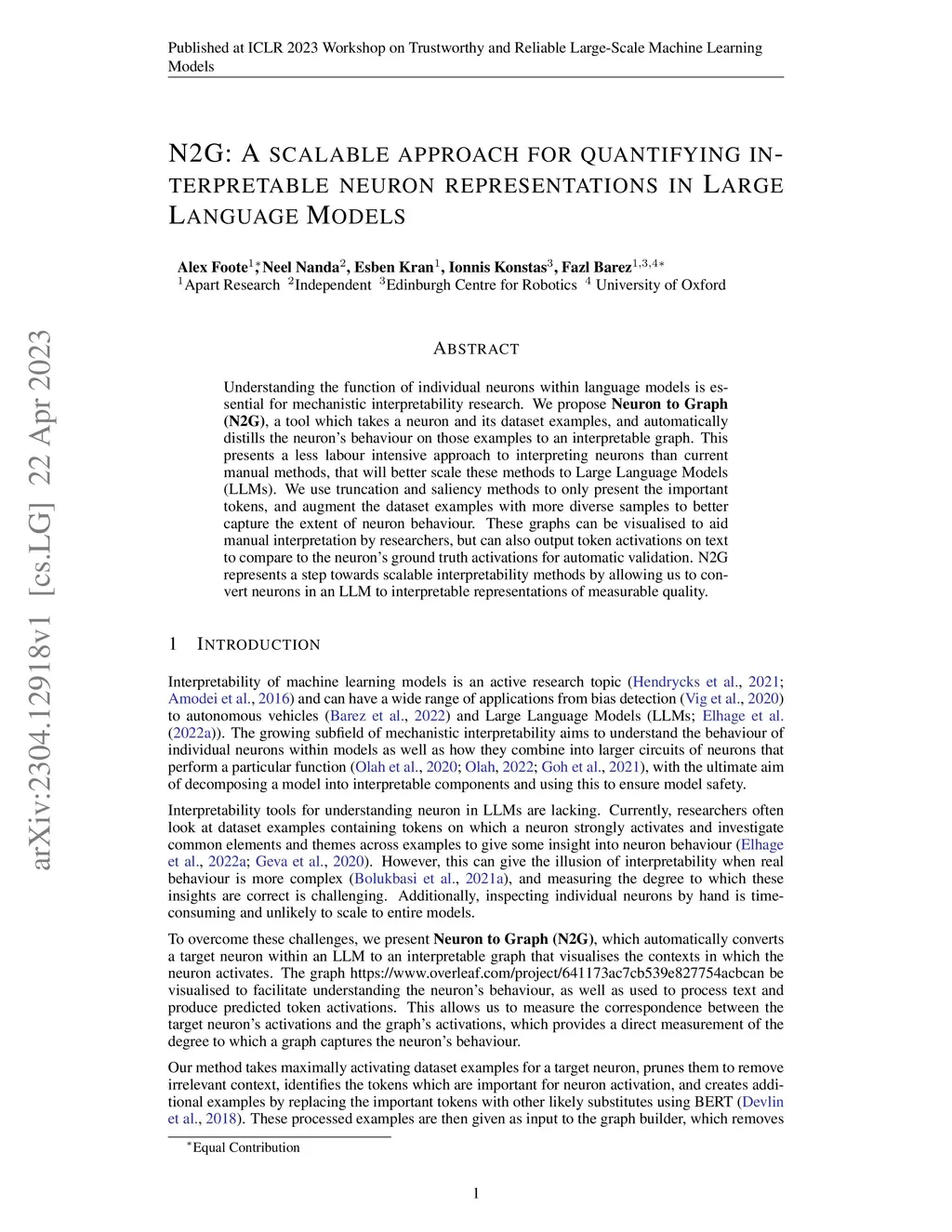 Understanding the function of individual neurons within language models is essential for mechanistic interpretability research. We propose , a tool which takes a neuron and its dataset examples, and automatically distills the neuron's behaviour on those examples to an interpretable graph. This presents a less labour intensive approach to interpreting neurons than current manual methods, that will better scale these methods to Large Language Models (LLMs). We use truncation and saliency methods to only present the important tokens, and augment the dataset examples with more diverse samples to better capture the extent of neuron behaviour. These graphs can be visualised to aid manual interpretation by researchers, but can also output token activations on text to compare to the neuron's ground truth activations for automatic validation. N2G represents a step towards scalable interpretability methods by allowing us to convert neurons in an LLM to interpretable representations of measurable quality.