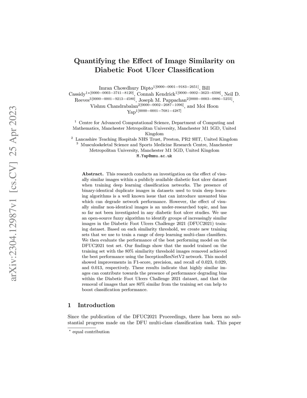 Quantifying the Effect of Image Similarity on Diabetic Foot Ulcer