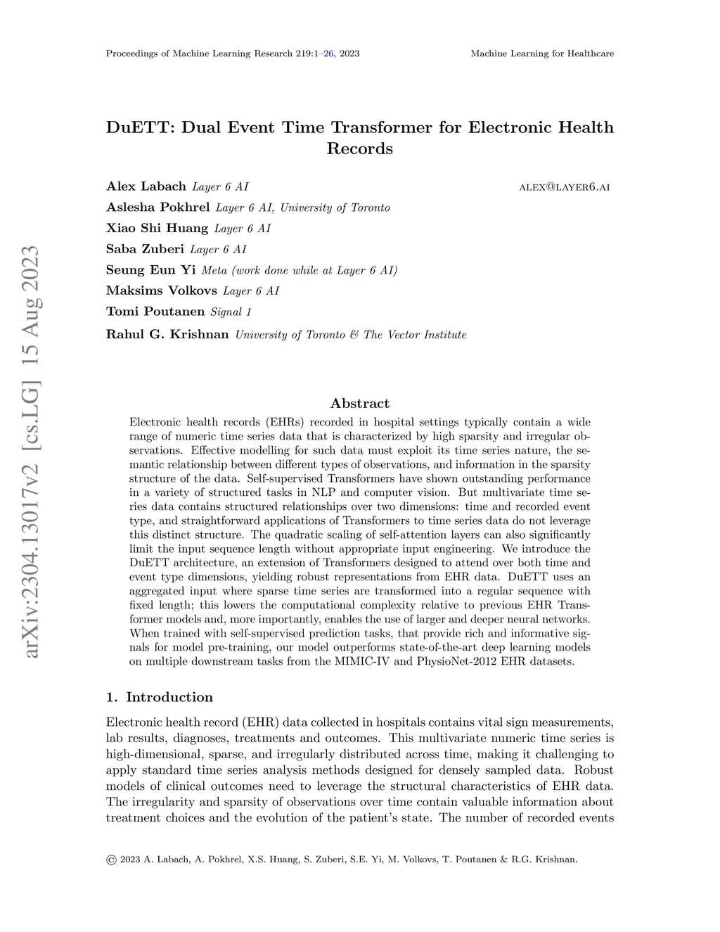 DuETT: Dual Event Time Transformer for Electronic Health Records