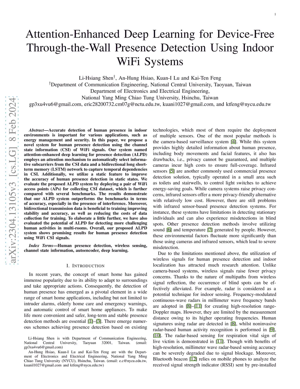 Accurate detection of human presence in indoor environments is important for various applications, such as energy management and security. In this paper, we propose a novel system for human presence detection using the channel state information (CSI) of WiFi signals. Our system named attention-enhanced deep learning for presence detection (ALPD) employs an attention mechanism to automatically select informative subcarriers from the CSI data and a bidirectional long short-term memory (LSTM) network to capture temporal dependencies in CSI. Additionally, we utilize a static feature to improve the accuracy of human presence detection in static states. We evaluate the proposed ALPD system by deploying a pair of WiFi access points (APs) for collecting CSI dataset, which is further compared with several benchmarks. The results demonstrate that our ALPD system outperforms the benchmarks in terms of accuracy, especially in the presence of interference. Moreover, bidirectional transmission data is beneficial to training improving stability and accuracy, as well as reducing the costs of data collection for training. To elaborate a little further, we have also evaluated the potential of ALPD for detecting more challenging human activities in multi-rooms. Overall, our proposed ALPD system shows promising results for human presence detection using WiFi CSI signals.